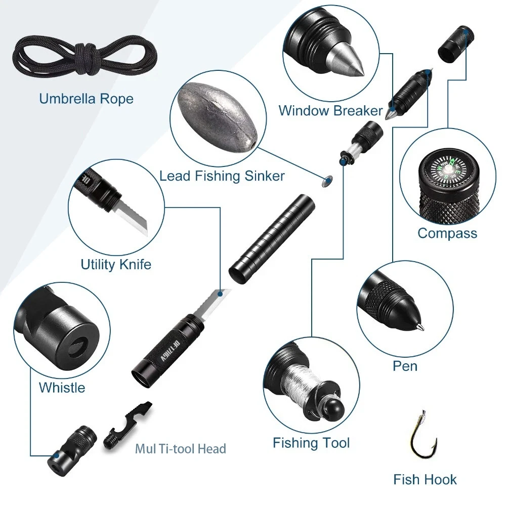 Specification: Color: Black Product size: length 190mm*width 15mm Material: aluminum alloy + stainless steel Weight: 120g Surface Treatment: Oxidized Applicable environment: help, training, writing, cutting things, bottle opener, compass, twisting screws, broken windows, etc. package includes: Tactical pen*1