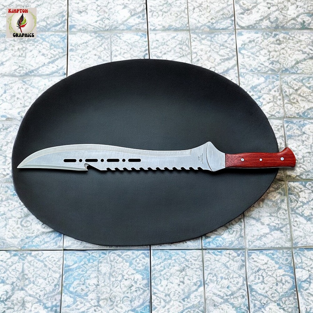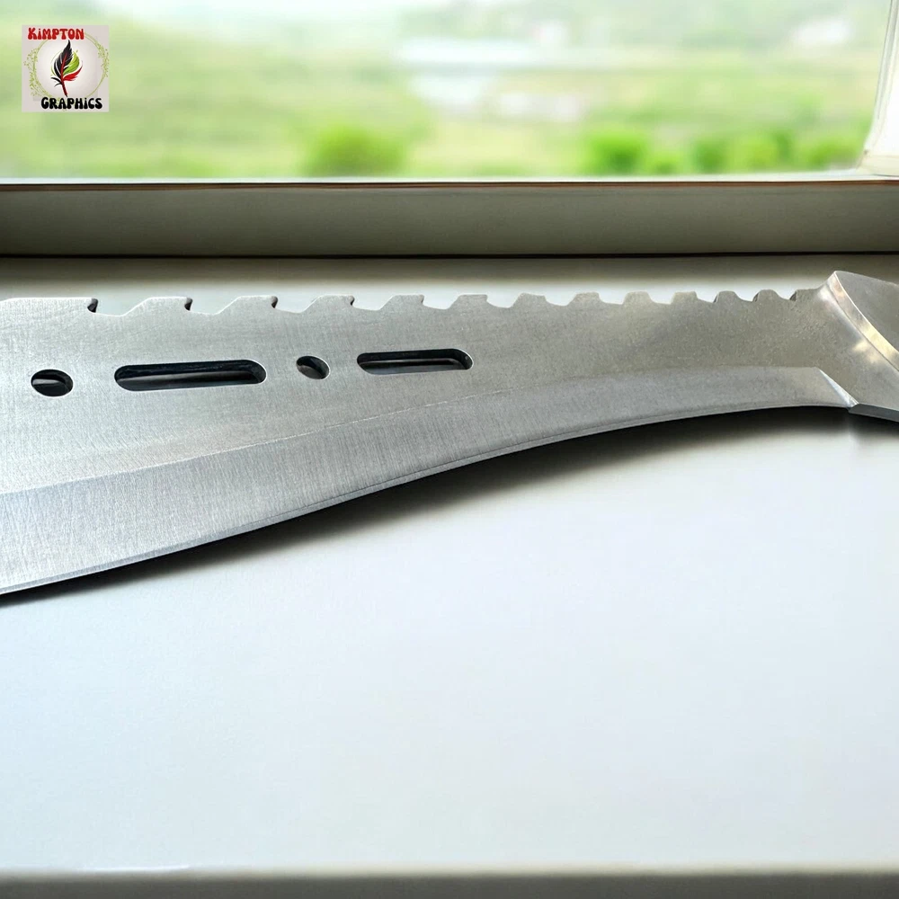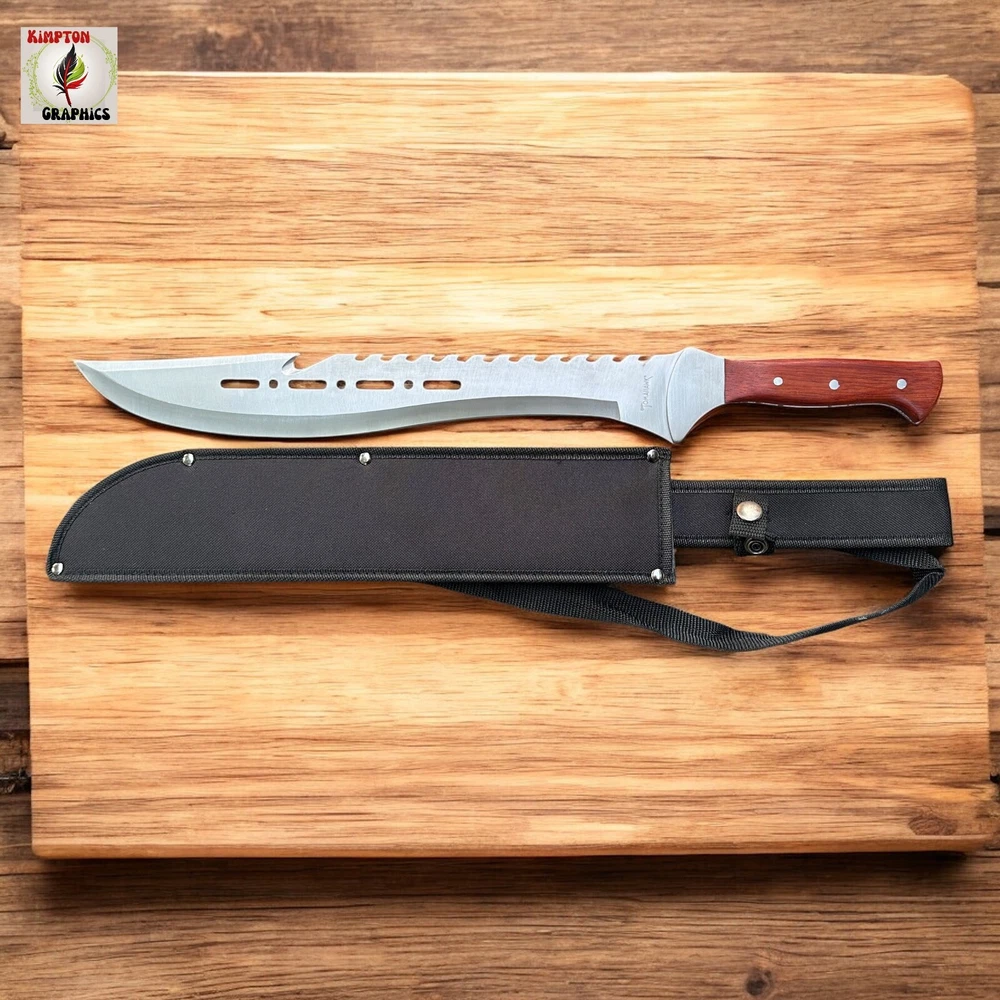 Need a machete that combines intimidation, cutting power, and rugged durability in one savage package? Whether you're blazing trails, surviving the wild, or showing off the ultimate display piece, this tomahawk-style machete dominates every situation. Its aggressive sawback spine, sleek cutouts, and razor-sharp blade deliver brute force and tactical finesse in one grip. πͺ Full Tang Construction β Built from a single solid piece of stainless steel for maximum durability π² Curved Cutting Edge β Ideal for slashing brush, limbs, or targets with precision πͺ Sawback Spine β Doubles as a saw for wood or rope in survival situations π Unique Blade Cutouts β Lightweight, stylish, and menacing design π³ Polished Wood Handle β Comfortable grip with triple-rivet security π§ Versatile Use β Great for hiking, hunting, outdoor survival, or collection This tomahawk machete isnβt just for show β itβs made to perform. Itβs the kind of tool you keep within reach because you never know when you'll need serious steel. Buyer must be 18+ and comply with all local, state, and federal laws.