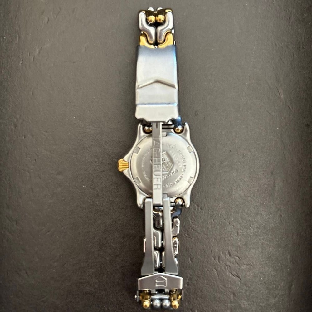 Customized: No Bezel Color: Gold Country/Region of Manufacture: Switzerland Model: TAG Heuer SEL Case Size: 24 mm Case Material: Stainless Steel Water Resistance: 200 m (20 ATM) Display: Analog Case Color: Silver Department: Women Band Material: Stainless Steel Type: Wristwatch Reference Number: S95.708 UPC: Does not apply Features: 12-Hour Dial, Date Indicator, Swiss Made, Water-Resistant Style: Casual, Classic, Dress/Formal, Luxury Movement: Quartz Brand: TAG Heuer Band Color: Gold, Silver Dial Color: Ivory gtin13: Does not apply