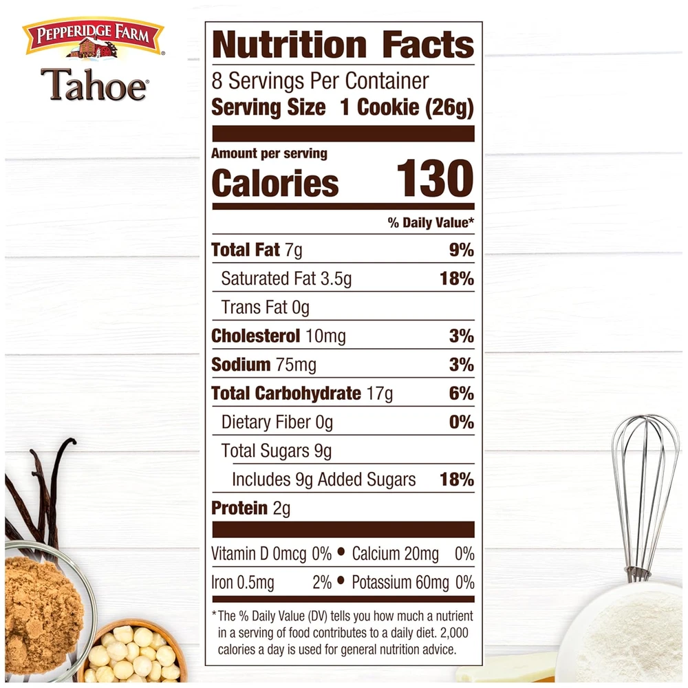 WHITE CHOCOLATE CHUNK COOKIES: Pepperidge Farm Tahoe White Chocolate Macadamia Nut Cookies are baked with white chocolate chunks and macadamia nuts DELIGHTFULLY CRISPY TEXTURE: These sweet and crispy cookies have a melt-in-your mouth flavor that’s just like homemade PERFECT PAIRINGS: Enjoy them on their own, dunk them in a cold glass of milk or hot cup of coffee, or use them in your favorite dessert recipes 8 COOKIES: Each 7.2-ounce bag contains 8 cookies and is perfect for sharing or stashing in your pantry to satisfy your cravings for sweet snacks GREAT FOR GATHERINGS: Our chocolate chip cookies are great for cookie platters and for creating desserts such as ice cream sandwiches and sundaes Enjoy the homemade taste of Pepperidge Farm Farmhouse Thin and Crispy Dark Chocolate Chip Cookies. Packed with just the right amount of decadent dark chocolate chips, these delightfully crispy and thin cookies have a rich, buttery flavor that melts in your mouth. Every batch is baked with care and quality ingredients, including creamery butter, cage-free eggs and real vanilla extract. Each 6.9-ounce bag contains 14 crispy cookies and is perfect for sharing or stashing in your pantry to satisfy your cravings for sweet snacks. Enjoy our thin chocolate chip cookies on their own, dunk them in a cold glass of milk, or pair them with a hot cup of coffee. Looking for a quick and easy dessert idea for your next party? Our thin and crispy cookies are great for serving on cookie platters and can be used to make other sweet treats such as ice cream sandwiches and sundaes. In addition to dark chocolate chips, Pepperidge Farm Farmhouse cookies are also available with milk chocolate chips, white chocolate chips and more. Pepperidge Farm cookies are crafted with care and quality ingredients by creative bakers who believe baking is more than a job – it’s a passion.
