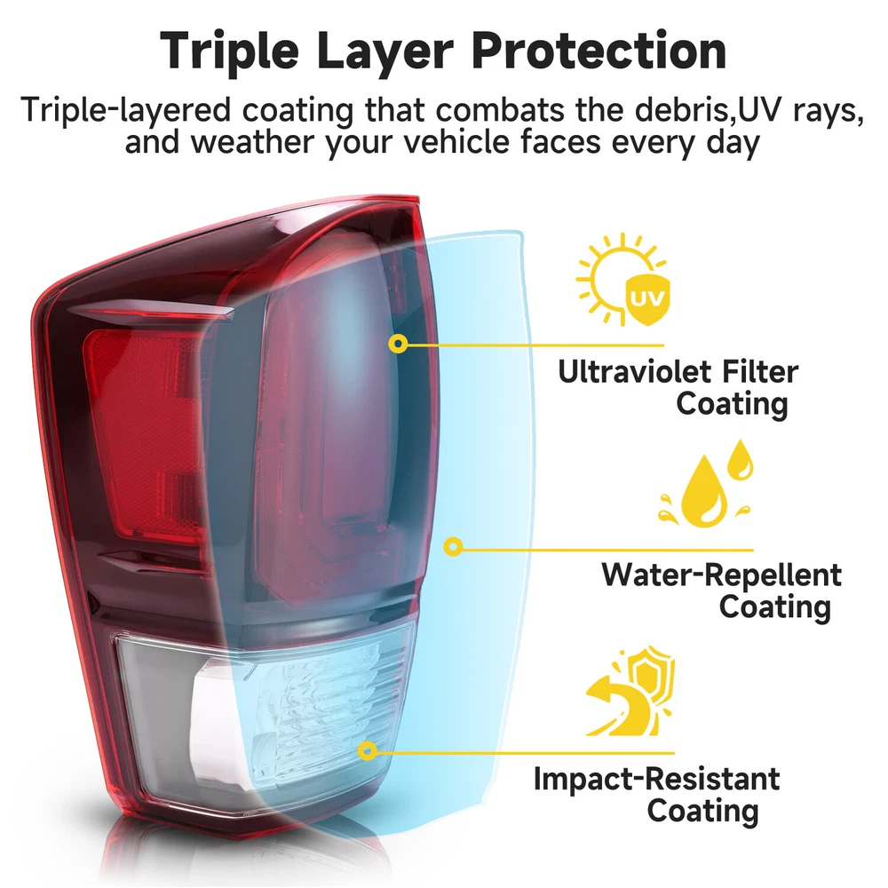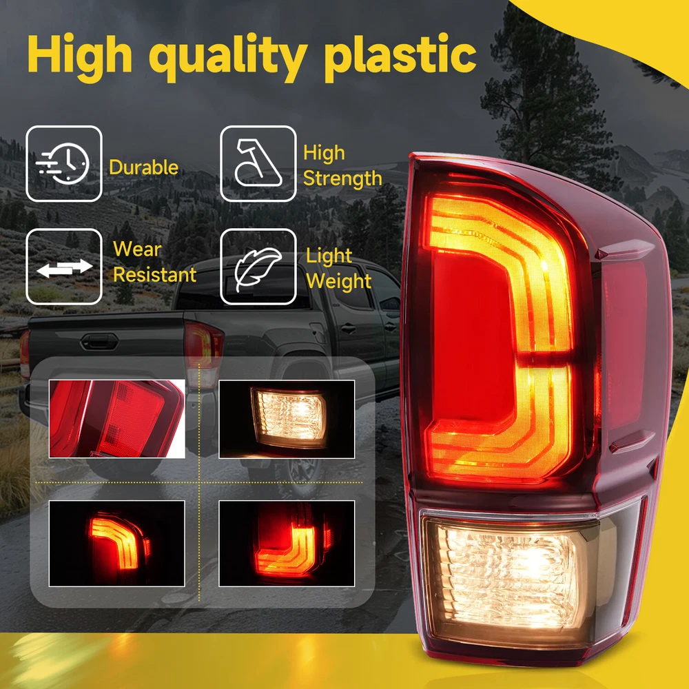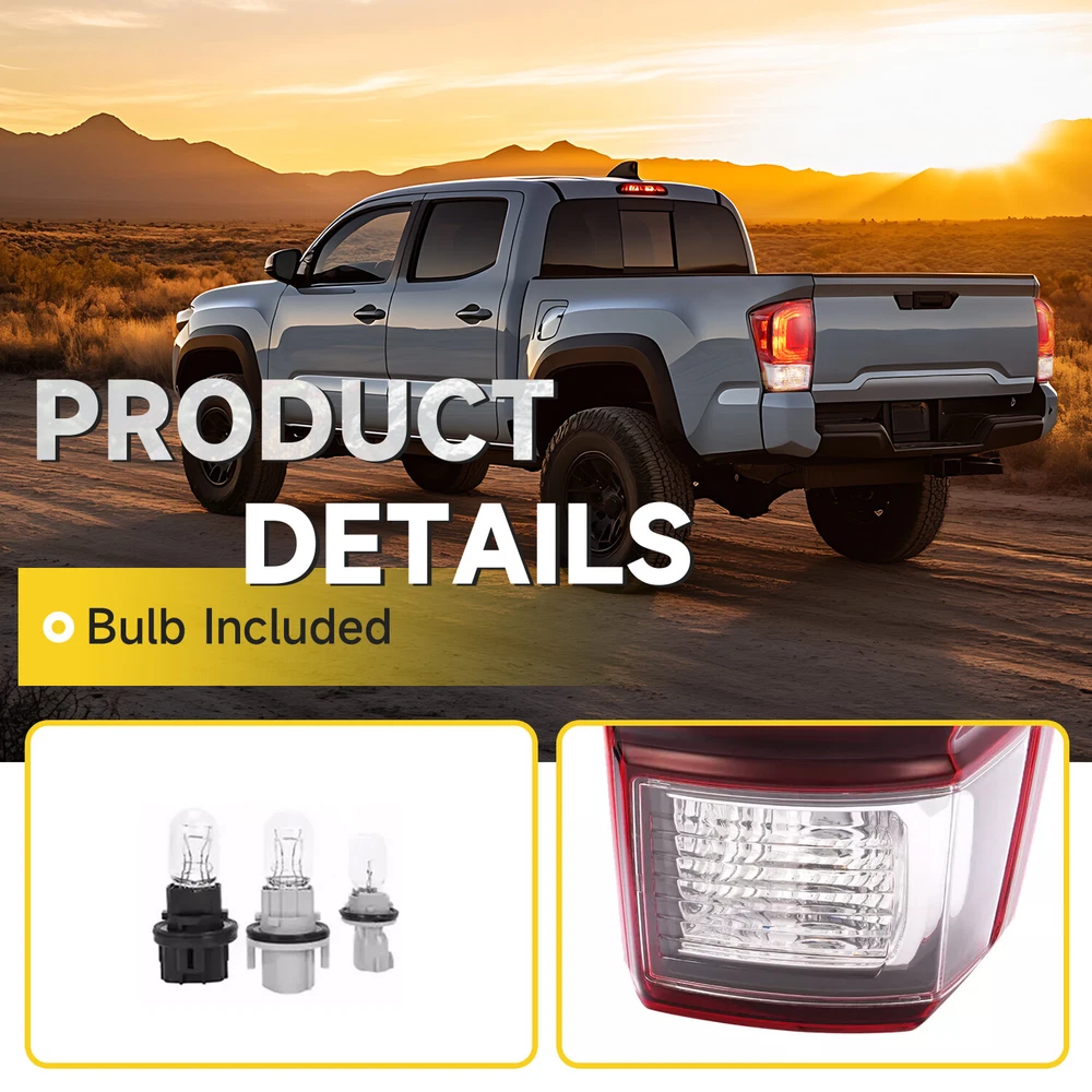 Tail Lights Driver & Passenger Side For Toyota Tacoma 2016-2023 2019 2021 FIT FOR For Toyota Tacoma 2016-2023 Specification Condition: 100% Brand New Color: Clear/Red Lens+Black Housing Material: Plastic Housing Color: Black Housing Lens Color: Clear/Red Lens Lighting Technology: Halogen Placement on Vehicle: Rear, Driver Side, Passenger Side Fitment Type: Direct Replacement Bulbs Included: Yes Features The Tail Light provides bright and clear lighting, improving visibility and ensuring safety on the road. Remind rear drivers to avoid rear-end collisions at night or in bad weather Withstand the test of bad weather Precisely engineered for an exact match to your vehicle. Made of high quality plastic construction, waterproof, not easy to wear. Ensure maximum performance and extended life of the taillight. Sealed & waterproof assemblies, exquisite looking, and to withstand any sand, water, snow or dust. Enhance Safety and Vehicle Appearance: At night, the tail lights will emit lights to indicate the location and driving dynamics, in order to let the other driver maintain a safe distance. The lens is made of high quality automotive grade plastic for high light transmittance, fading resistance, tough and durable enough. Package Includes 1 X Pair of Tail lights Bulbs Included Shipping All items will be shipped out in 1 business day, no expedited service available. We ship our items to USA only(Does NOT include Hawaii, Alaska or Puerto Rico, PO Boxes/APO's). Shipping Notes We use multiple warehouses and will select the nearest warehouse for delivery according to your order address and our inventory, Thank you for your cooperation. Contact us Any Questions, Just feel free to contact us on eBay. We will reply you in 24 hours. On Jan 10, 2025 at 19:57:14 PST, seller added the following information: