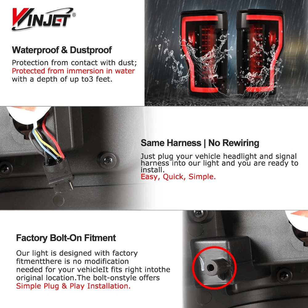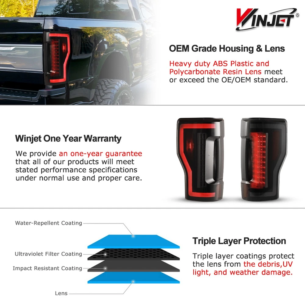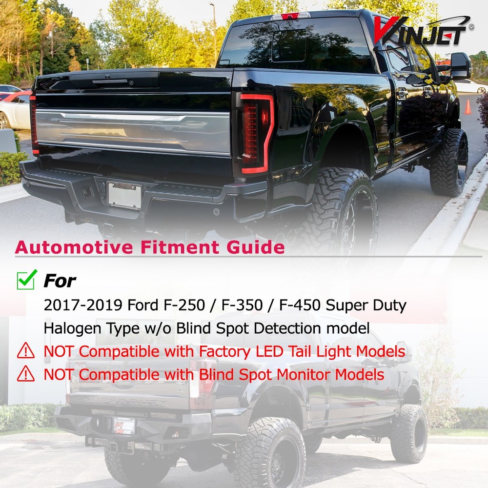 Title Other Head Lights For Jeep For Ford For Dodge For Chevy/GMC For Honda For Toyota For Nissan For Subaru For Mazda For Acura For Mitsubishi For Audi For MINI Tail Lights For Jeep For Dodge For Chevy/GMC For Toyota For Nissan For Honda For Volkswagen For Mazda For Subaru For Isuzu For Mitsubishi For Cadillac For MINI Fog Lights For Jeep For Ford For Honda For Dodge For Toyota For Chevy/GMC For Nissan For Mazda For Subaru For Infiniti For Cadillac For Scion For Lincoln For Acura For BMW For Hyundai For Volkswagen For Buick For Chrysler For Lexus For Mercedes Benz For Kia For Audi For MINI Turn Signal Lights For Jeep For Ford For Dodge For Chevy/GMC For Toyota For BMW For Subaru For Nissan For Cadillac For Lincoln Tail Lights For 2017-2022 Ford F250 F350 F450 Super Duty +LED Sequential Signal Compatibility: For 2017-2022 Ford F-250/F-350/F-450 Super Duty 【Halogen Type w/o Blind Spot Detection model】 ❌ Not Compatible with Factory LED or Blind Spot Information System (BLIS) Tail Light Models ❌ Not Plug & Play,pls reuse your factory bulbs & bulb sockets Specifications: Special Feature: Sequential Display Light Source: LED Reverse Bulb: 7440 (Not Included) Turn Signal/Brake/Running Bulb: LED (Included) Housing / Lens Material: ABS / PMMA Color Finish: Black Housing / Smoke/Tinted Lens Package: 1 Pair Tail Lights (Left Side & Right Side) Replaces Original (OEM) Part: 17-19: L:HC3Z13405F; R:HC3Z13404F 20-22: L: LC3Z13405C; R: LC3Z13404C ABPA Partslink: 17-19: L:HC3Z13405F; R:HC3Z13404F 20-22: L: LC3Z13405C; R: LC3Z13404C Feature: 【 Perfect Compatibility 】Suitable for Ford F-250 F-350 F-450 Super Duty 2017-2022 (Not fit Factory LED Tail Light Models or Blind Spot Monitor Models). Fully meet OE standard and security, including USA DOT (Department of Transportation) & SAE (Society of Automotive Engineers) policy and other international regulations. Please confirm your vehicle model before purchase, thank you! 【 High Performance 】Compared with the standard halogen lamp, the LED light source is brighter and more energy saving without any light pollution. With our advanced intelligent control technology, the tail light will respond quickly, output stably and provide obvious warning effect. 【 Stylish Design 】With unique design and lighting effect, the tail lights will not only help you improve driving safety, but also make your car more eye-catching and show your personality. It is the perfect choice for decorating your car! 【 High Quality 】The 3-layer coating lens has excellent UV and impact protection. OEM level and completely sealed housing structure is shake-proof and weather-proof, which will prevent the moisture and dust from entering the lights. So the tail lamp is durable to deal with various road conditions and harsh weather. Moreover, aluminum heat sink and circuit protection driver design will effectively ensure the normal work of the lights. 【 Easy Installation 】The taillight assembly has factory bolt-on fitment, which includes direct Plug & Play connector, no wiring or modify required, so you will complete the installation quickly! If you have any questions about the installation, please feel free to contact us and we will do our best to help you! Package Include: 1 Pair of Tail Lights (Left and Right Side) Payment Delivery details Terms of sales About us Contact us Payment 🤟 We accept PayPal (Recommended), credit card, VISA, Google Pay & Discover etc. 🤟 Please submit your payment within 7 days after your purchase. 🤟 If not, eBay will automatically open an Unpaid Item Dispute on our behalf if the item(s) are not paid within 7 days. Delivery details 🤟 Please double check your delivery address and contact information. 🤟 All items will be shipped within 1 business days after payment received. 🤟 Tracking numbers will be easily accessible ASAP they are created and processed. Terms of sales 🤟 Free 60 days Return, we will cover the return post fee. 🤟 If a defective product was received, please do not hesitate to message us via eBay message. 🤟 We will response in 24 hours in business to resolve the problem 🤟 We stand behind our products. Items can be returned for exchange or full refund within 60 days from the date you receive. About us 🤟 Winjet has a huge warehouse and office located in the United States. 🤟 All US domestic 48 states customers are able to benefit from the FREE SHIPPING services. 🤟 Our experienced, professional customer service representatives offers prompt and courteous service. 🤟 Best quality products, outstanding services and professional experience keep our customers. Contact us 🤟 Please feel free to contact us if you have any problems. 🤟 Emails will be replied within 24 hours in working days. 🤟 After hours emails will be replied on the next business day. Light Color Red Items Included Ballast Wattage 55 W Item Length Placement on Vehicle Rear, Left, Right Bulb Shape Code W21W (7440) Lumens 1000 lm Manufacturer Warranty 1 Year Voltage 12 V Item Height Features DOT-Certified, SAE-Certified, Sealed Assembly Finish Smooth Item Width Lighting Technology LED Other Part Number 17-19: L:HC3Z13405F; R:HC3Z13404F Color Temperature 6000K Shipping and customs clearance fees for international orders Buyer pays by himself Fitment Type Direct Replacement Manufacturer Part Number WJ2025-0563R-05 Number of Bulbs 2 Brand Winjet Type Tail Light Assembly Interchange Part Number 17-19: L:HC3Z13405F; R:HC3Z13404F, 20-22: L: LC3Z13405C; R: LC3Z13404C OE/OEM Part Number 17-19: L:HC3Z13405F; R:HC3Z13404F, 20-22: L: LC3Z13405C; R: LC3Z13404C Housing Color Black Model Super Duty Fitment For 2017-2022 Ford F-250 / F-350 / F-450 Super Duty Lens Color Smoke/Tinted Sold as a pair Driver and Passenger Side Universal Fitment No On Sep 4, 2025 at 21:01:49 PDT, seller added the following information: