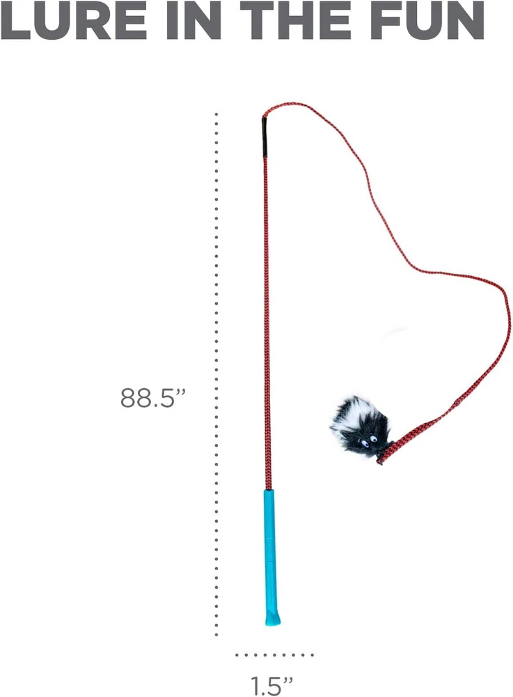The Tail Teaser Dog Wand is made with soft plush and durable nylon cord to last you through hours of play time or training Take it to the park or keep it at home, this durable dog toy travels easy Includes two faux fur plush toys that squeak and rattle to activate your dog's natural hunting instincts A perfect companion to agility kits if you're training your pup No toy is indestructible, supervise pets and replace damaged toys Get your dog moving with the Outward Hound Tail Teaser Dog Wand! This interactive toy features a durable nylon cord and flexible pull, with two squeaky, rattling plush toys to activate your dog's natural hunting instincts. Perfect for indoor and outdoor play, it provides exercise and entertainment. Replacement squeaky lures sold separately SAFETY & CARE: When choosing a toy, make sure to choose an appropriate size toy for your dog. No toy is indestructible. ALWAYS supervise your dog when using this toy as it is intended for interactive play. Toy should be stored until next supervised use. Inspect toys regularly for damage and remove and replace if broken, or if parts become separated, as serious injury may result. Intended for dogs only. Keep out of reach of children. May contain small parts.