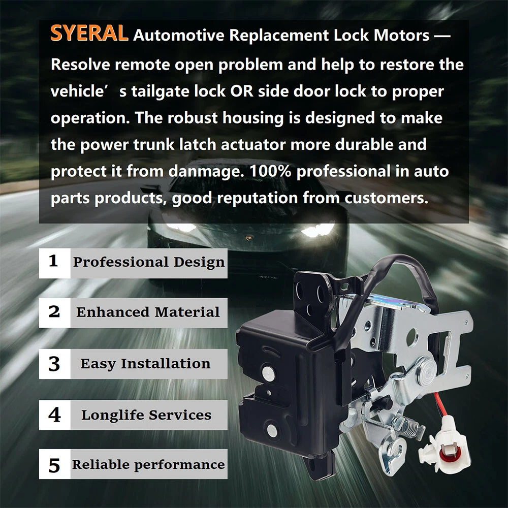 Product Description Ship from the nearest one of our warehouses in America. Please check the part number, Fitment Vehicle and Listed Pictures above make sure whether it fit the part you want to replace or not. Welcome to contact us if you have any question or problem. We will reply within 1 business day. Description: • 100% Brand New & High Quality • Non-original aftermarket product • 100% Factory Tested • Installation instruction is not included. Specifications: Part name: Liftgate Lock Latch w/o Actuator | Rear Latch Liftgate Door Lock | Trunk Lacth | Rear Hatch Latch | Tailgate Lock Color/Finish: Black Package: 1pc Packaging Type: Box Interchange Part Number: 69301-0C010 / 693010C010 64680-0C010 / 646800C010 931-861 / 931861 Fitment: 2001-2007 Toyota Sequoia 2001 Toyota Sequoia 2002 Toyota Sequoia 2003 Toyota Sequoia 2004 Toyota Sequoia 2005 Toyota Sequoia 2006 Toyota Sequoia 2007 Toyota Sequoia Package includes ( as pictured ) : 1x Liftgate Lock Actuator 1x Lock Control Cable