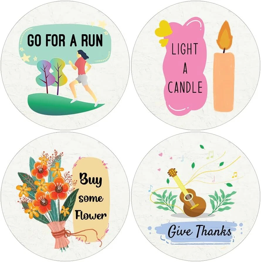 16 UNIQUE DESIGNS INSPIRING STICKERS FOR YOUR DIY PERSONALIZED DECORATIONS - Creanoso Take a Break Series 1 Stickers (5-Sheets). These colorful and uniquely inspiring round shaped stickers are the best tool for DIY decoration and personalization of your belongings. GREAT STOCKING STUFFERS , TEACHING SUPPLEMENTARY MATERIALS, AND GIVEAWAY - Great stocking stuffers gifts for Boys, Girls, Teens, Kids. A perfect design to give during classroom school activities, home schooling,birthdays, anniversaries, family day, and any other special occasions. MADE WITH DURABLE AND WATERPROOF MATERIALS - There is a lamination or coating to make the stickers high water resistant, and WILL NOT fade from the water. The stickers can stick it anywhere you like, and it sticks there and lasts a long time. A COLORFUL AND DECOR STICKER DECAL - Each sheet with 16 individual round stickers. There are 5 sheets , with a total of 80 pcs of stickers. STICKER SIZE: 1.5 INCHES IN DIAMETER Take a Break Stickers Series 1 (5 Sets X 16 Designs) COLORFUL AND COLLECTION OF TEXT STICKERS • Well designed. • Very encouraging. • Self-adhesive. Take a Break Stickers Series 1 (5 Sets X 16 Designs) are super fun to collect; you can't have just one! That's why you will find a selection of stickers right here. Each package comes with different stickers in a variety of designs. Stick them here, stick them there, stick them everywhere! Everyone will love these self-adhesive stickers. These colorful stickers are perfect for any adults and these come with very inspiring messages and bright pictures. A fun, inexpensive way to add a decorative, notes, and stationery. Delight yourself with uplifting messages designs that are very encouraging. Take a Break Stickers Series 1 (5 Sets X 16 Designs) perfect for giveaways, behavior incentives, prizes! These stickers are acid-free, nontoxic, and safe for use on photos. This product comes with a 60 days money back guarantee. You can return them to us for a full refund.