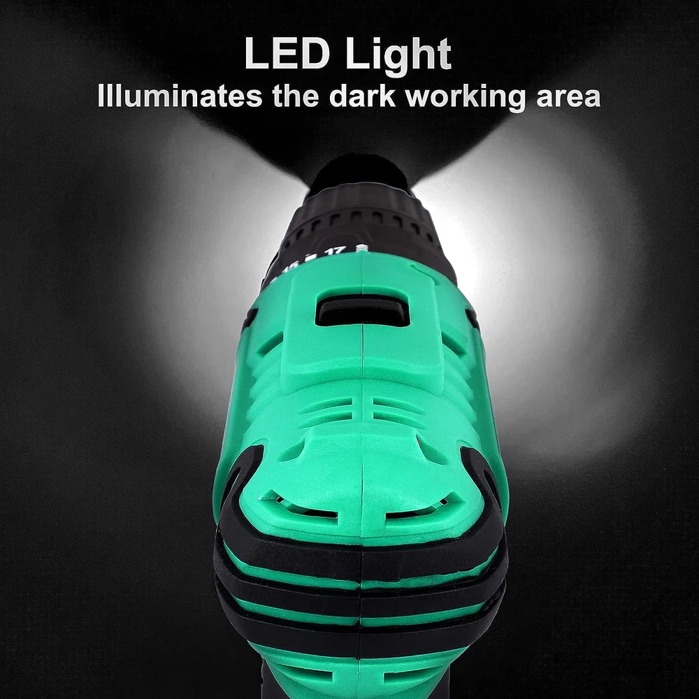 3/8” AUTO CHUCK, 25+1 CLUTCH & VARIABLE SPEED 25+1 Position Clutch: 25+1 torque (266In-lbs) settings provide precise control for driving in/out screws to prevent stripping, and drilling into wood, ceramics, drywall, plastics and even metal with ease. A 3/8” eyeless chuck serves you with an automatic spindle lock that enables your pair of hands to quickly change with great accessory compatibility. MULTI-PURPOSE with LED LIGHT LED light illuminates dark working areas. The F/R button can be adjusted for clockwise and counterclockwise rotation. A flexible shaft could be used in some places where driver bits are hard to reach. 2 Variable speed(0-350RPM and 0-1,500RPM)with electric brake function provides precise operation. 1500mAh BATTERY & ERGONOMIC DESIGN This electric drill set comes with a 20V 1500mAh Lithium-Ion batteries and 1pc 1-hour fast charger, helping you finish your job smoothly with long lasting performance. Compact and lightweight design with superior motors can increase efficiency and provide safety. Rubber-covered handle provides a comfortable grip and less vibration for you during heavy work. MORE POWER & RUNTIME The brushless drill adopts efficient brushless motor which delivers outstanding runtime and longer motor life than ordinary copper motor. The brushless motor does not need to change carbon brush and no sparks are generated during use. It's safer and more comfortable to use. Efficient Working A flexible shaft could be used in some places where driver bits are hard to reach; LED light illuminates dark working areas; Variable speed(0-1300RPM)with electric brake function provides precise operation. Specfication: Brand: CshidWorld Power Source: Battery Powered Maximum Rotational Speed: 1300 RPM Voltage: 20 Volts Amperage: 1.5 Amps Maximum Chuck Size: 10 Millimeters Special Feature: 2 Variable Speed Product Dimensions: 11.2"L x 9.8"W x 3.15"H Maximum Torque: 266 Inch Pounds Speed: 1300 RPM Battery Capacity: 1500 Milliamp Hours Item Weight: 5.19 pounds Package Included: 1 x 20V Cordless drill 1 x Battery 1 x Fast charger 3 x HSS Twist drill bits 3 x Brad Point drill bits 3 x Masonry drill bits 11 x Screwdriver bits 2 x Double-headed bits 1 x Flexible Hex Shaft 1 x Storage case 【20 Voltage & 2 Variable Speeds】 Higher voltage means more torque-spinning strength to overcome resistance. This 2 variable-speed ( 0-350 & 0-1300 RPM ) cordless drill with an adjustable clutch gives you the versatility for drilling different materials and using a variety of bits. The low speed is for driving screws, the high speed is for drilling holes. 【25+1 Position Clutch & 266 In-lbs Max Torque】 This cordless drill's clutch provides precise control for drilling, which helps to prevent sinking a screw too deep, stripping out the head of a screw or even breaking a screw shaft. 17-Torque allows for various applications and additional 1-torque for drilling. 【1500mAh Batteries & 60min Fast Charger】 20V 1500mAh Lithium-Ion battery packed with higher capacity indicator lets you finish your job smoothly with long lasting performance. 1.5A 1-hour fast charger keeps your drill constantly running. 【3/8” Keyless Metal Chuck & LED Work Light】 A 3/8-inch cordless drill accepts a wide range of bits, making it versatile for common tasks around the house. Drill has keyless chuck that you can tighten or loosen by hand. The Forward/Reverse switch allows you to either screw or replace/remove bits for your purposes. LED Light for increased visibility in enclosed workspaces and dark environment. 【23 Pcs Drill Bits Accessories & Compact Storage Case】 Our electric cordless drill/ driver kit with 23 Pcs accessories: 3 x HSS Twist drill bits, 3 x Brad Point drill bits, 16 x Screwdriver bits, 9 x Sleeves, 1 x Extension Bar, 1 x Flexible Hex Shaft. A storage case is suitable for home Improvement & DIY Project.