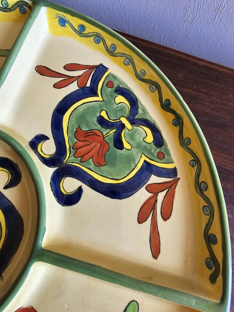 This vibrant Talavera serving platter is a stunning addition to any table! The handcrafted design pops with rich colors, and the divided sections keep dips and snacks neatly organized. Perfect for entertaining—durable, beautiful, and full of authentic Mexican charm. Love the intricate details and sturdy craftsmanship!