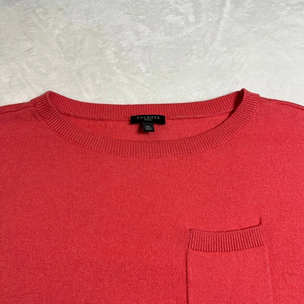 Talbots Cotton Wool Blend Knit Sweater Size Medium Petite CONDITION: Pre-Owned. Gently Used Condition. FLAWS/ALTERATIONS: There is light pilling. COLOR: Coral Pink (The pictures are making the sweater darker, but its a lighter coral pink) SIZE: Women’s Size Medium Petite DETAILS: Crewneck Long sleeve Single pocket Knit Luxury fabric blend Soft cozy fabric Stretch MEASUREMENTS: Chest: 20.5" Full Length: 23.5" **All measurements are approximate and are taken flat** MATERIAL: 65% Cotton 30% Wool 5% Cashmere Bundle 2 OR MORE items to save more! Reasonable offers are welcomed! TAGS: Casual Comfy All Season Travel Vacation Contemporary Minimalist