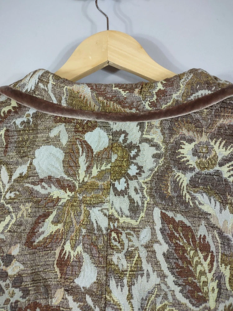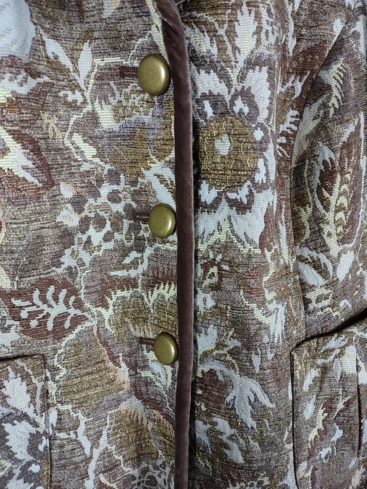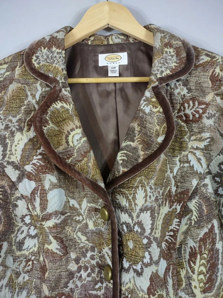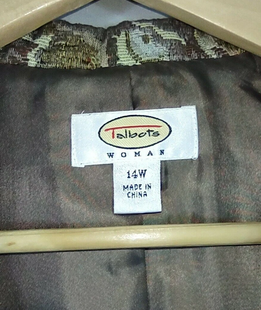Talbots Jacket Women 14 Brown Jaquard Tapestry Velvet Trim Lined Short Button Up