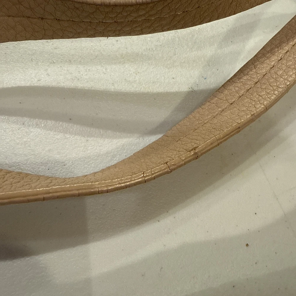 This beautiful Talbots Leather Tote in Beige is the perfect accessory for any stylish woman. With a drawstring closure and large size of 15 inches in width and 11 inches in height, this tote is perfect for carrying all your daily essentials. The exterior is made of high-quality leather and features a stunning gold hardware color that adds a touch of elegance to your look. The interior is lined with beige fabric and has a matching handle/strap color. This tote is perfect for any occasion, whether it's a day at the office or a night out with friends. The Talbots brand is known for its exceptional quality and style, making this tote a must-have for any fashion-forward woman. Add this stunning piece to your collection today and elevate your style game! There is very slight signs of use with small markings on bottom and very small cracks on edge (see picture).