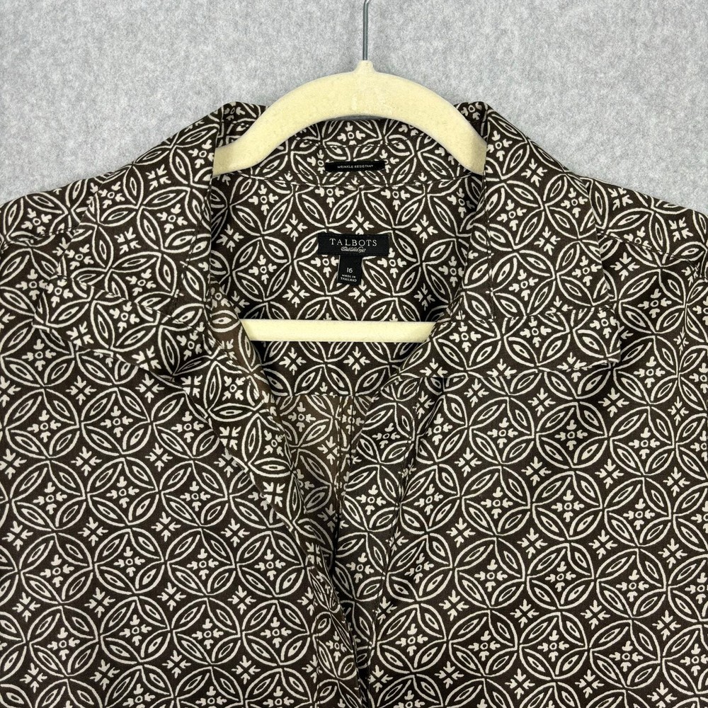 Talbots Shirt Womens Plus Size 16 Brown Medallion Wrinkle Resistant Career Church Cotton Corp Career Work Office Business Church Long Sleeve Roll Cuff V Neck Collar Preppy Academia Pre-owned condition: minimal to no signs of wear, no stains or holes SKU 5479 **Please see all pictures for full item condition, details, and approximate measurements** - Ships Same/Next Day, Professional Seller, Offers Welcome, Like or watch for price drops - Item in photos is exact item you will receive - I list new items daily, be sure to browse my store/closet for more items - Bundle pricing and combined shipping available for additional savings - Feel free to send a message