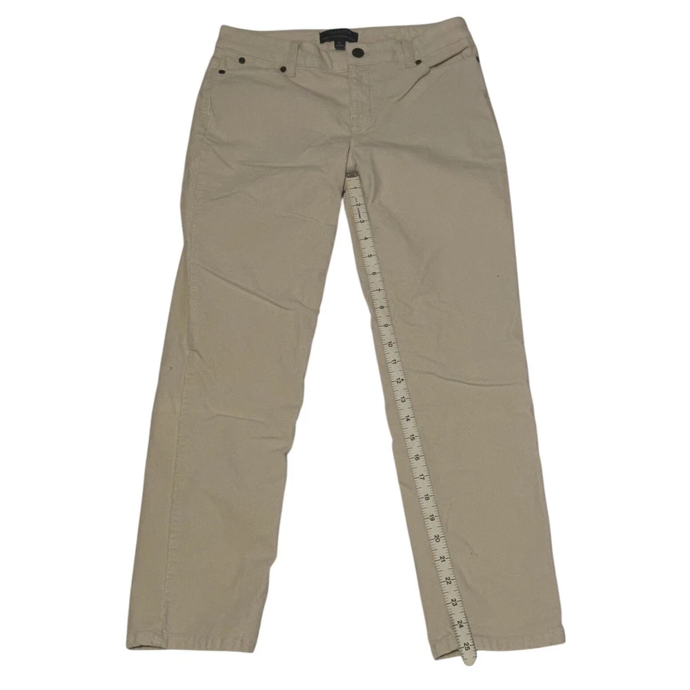 Style: Ankle Closure: Button Season: Fall, Spring, Summer, Winter Fabric Type: Corduroy Leg Style: Straight Type: Pants Accents: Button, Zipper Brand: Talbots Country/Region of Manufacture: Bangladesh Department: Women Material: Polyester, Cotton, Lyocell, Spandex Theme: Retro, School, Office, Career, Professional, Work Inseam: 27.5 in Front Type: Flat Front Size Type: Petites Size: 4 Pattern: Solid Rise: Mid (8.5-10.5 in) Color: Tan Waist Size: 30 in Features: Pockets, Stretch Occasion: Business, Casual, Travel, Workwear