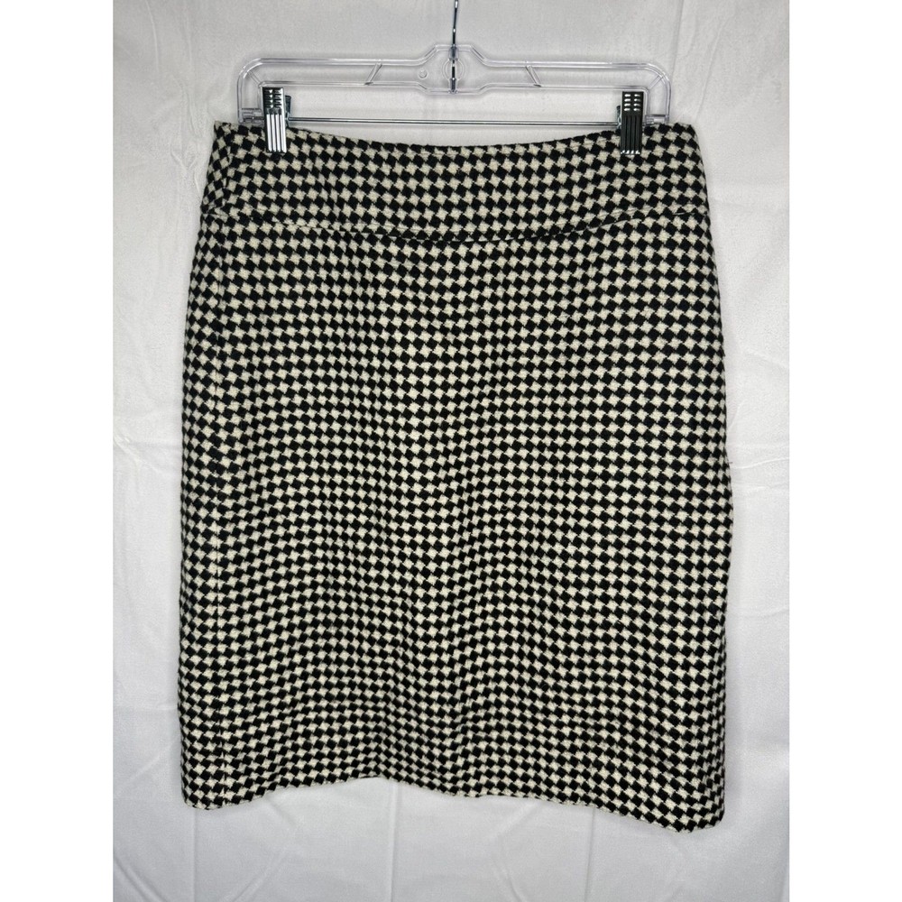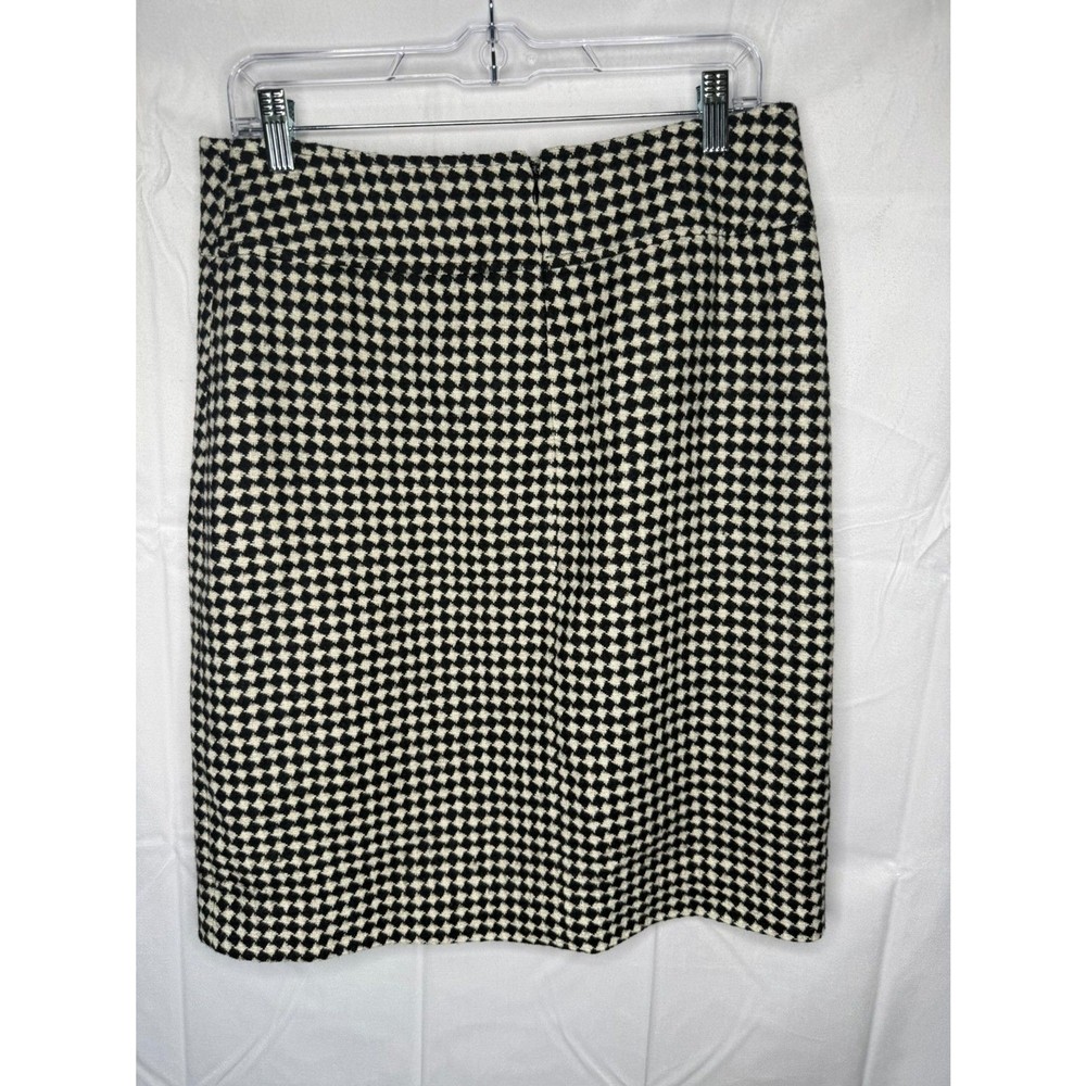 Talbots Size 8 Wool Tweed Plaid Black Cream Women Skirt Modern Stylish Cut NEW
