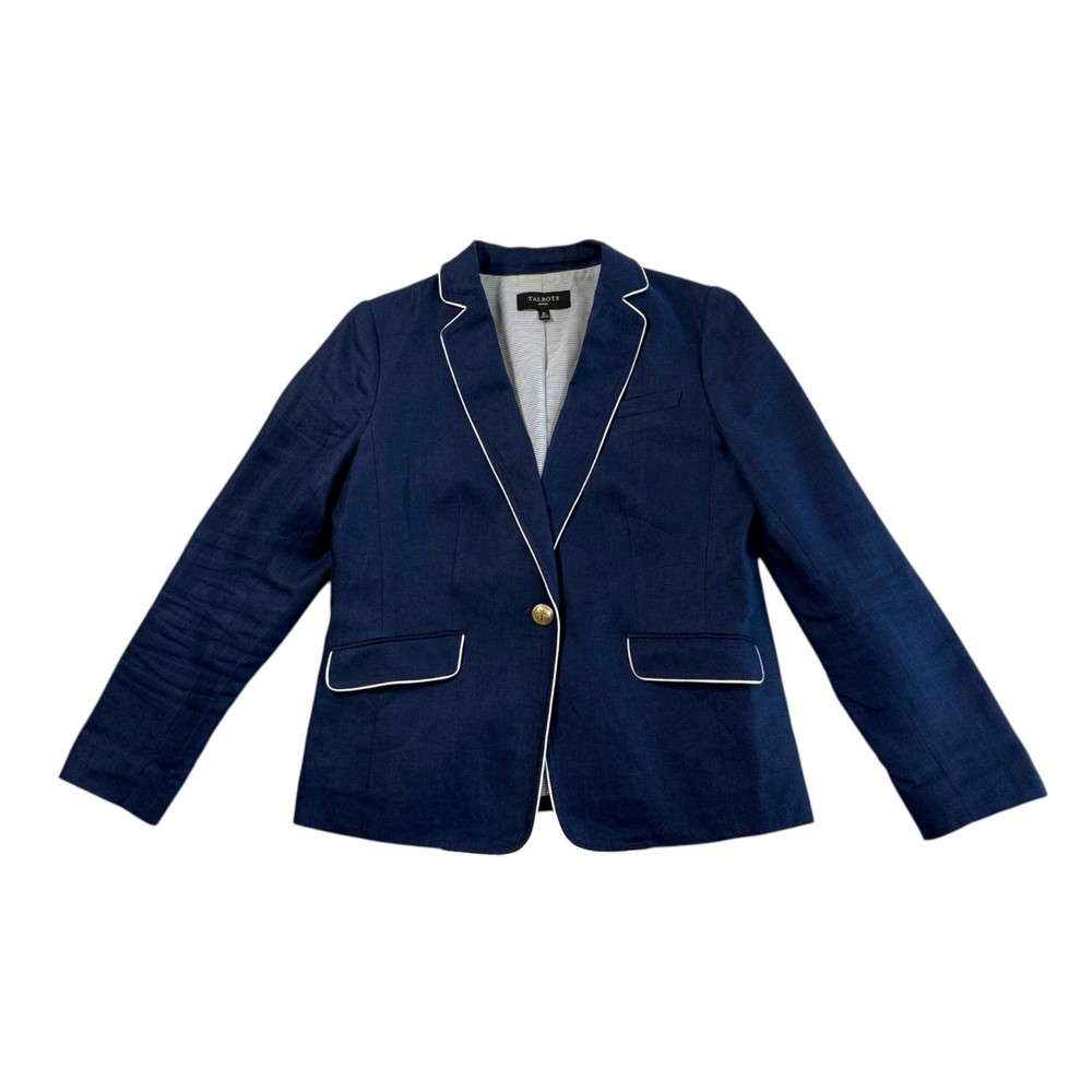Talbots Womens Linen Blazer Navy Sz 8P Excellent pre-owned-condition Channel effortless Hamptons elegance with this timeless Talbots linen blazer. Designed in a classic navy with crisp white piping and a polished gold-tone button, this piece captures that refined, “old money” coastal aesthetic that never goes out of style. Measurements (approximate, laying flat) Bust (underarm to underarm): 19" Length: 24.5" Think: coastal mornings, boat shoes, oversized sunglasses, and a perfectly tailored blazer. Style: Coastal, Preppy, Hamptons Style, Quiet Luxury, Nautical, Minimalist, Old Money, Fisherman