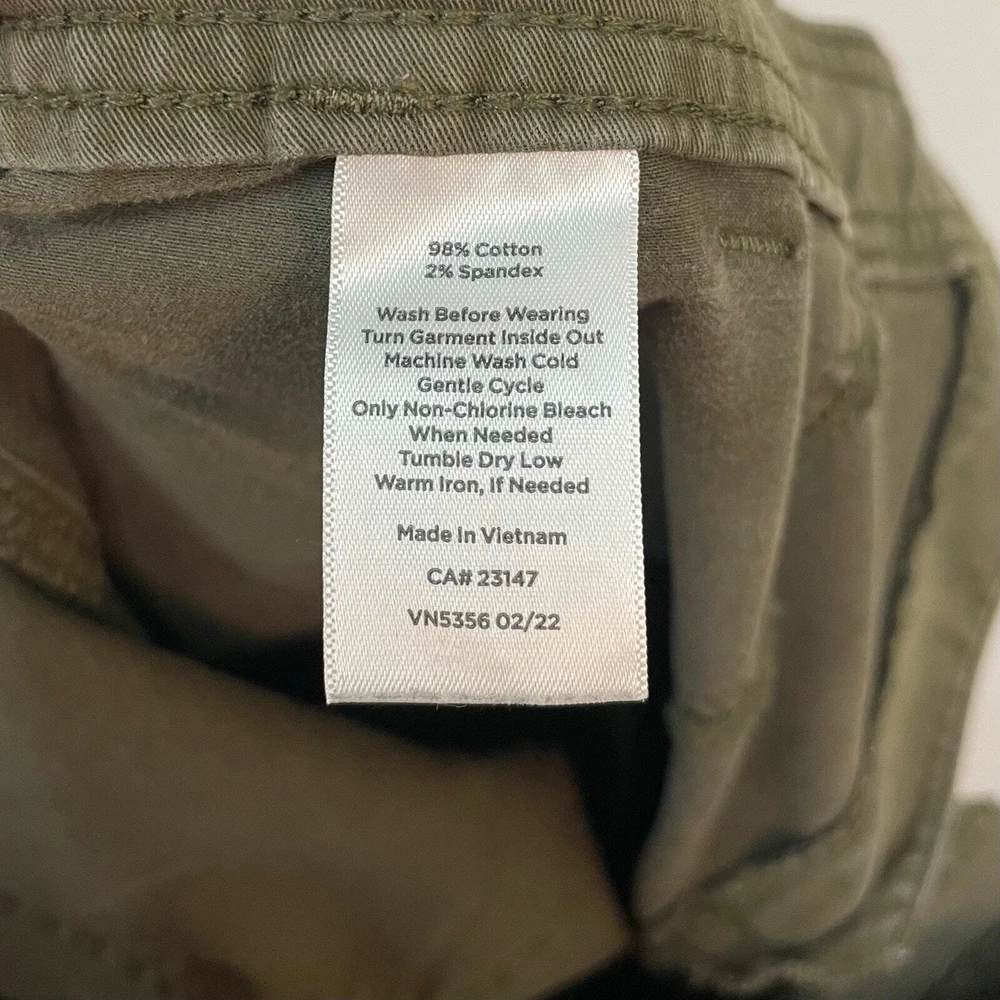 Talbots Women's Olive Green Cotton Stretch High Rise Slim Leg Cargo Pants Olive/Army green Front and back pockets One side cargo pocket Flat front Elastic waist in back Cotton-spandex blend Waist- 16" across Rise- 11.5" Inseam- 27" *Excellent preowned condition