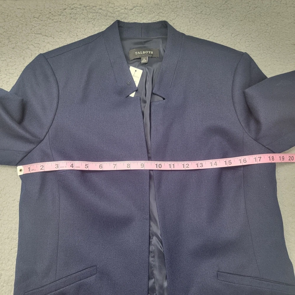 Talbots Wool Blend Open Blazer Jacket Size 6 Navy Blue Lined