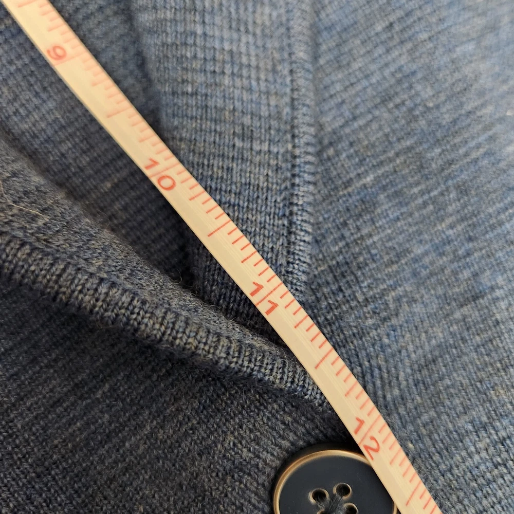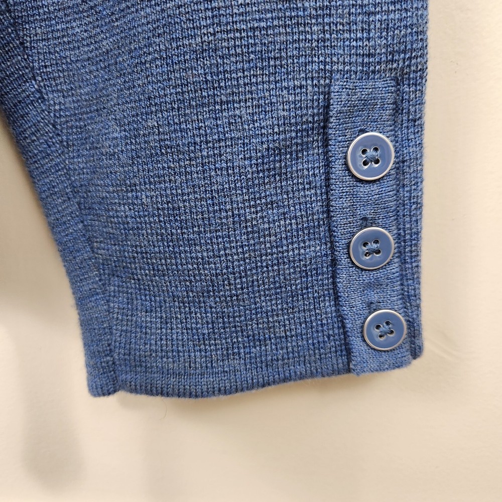 Women's Talbots 100% pure merino wool blue button-front cardigan blazer sweater jacket, size XLP extra large petite. Garment is in excellent preowned condition with no signs of wear. Measurements are approximately 10.5" to the v-neck button closure, 24" in length and 22" across the chest.
