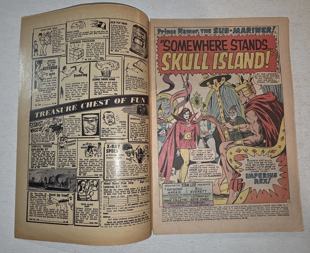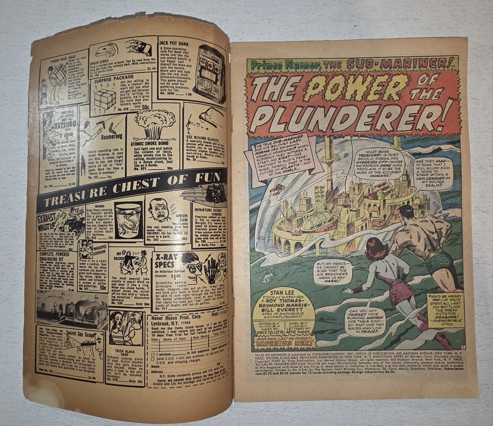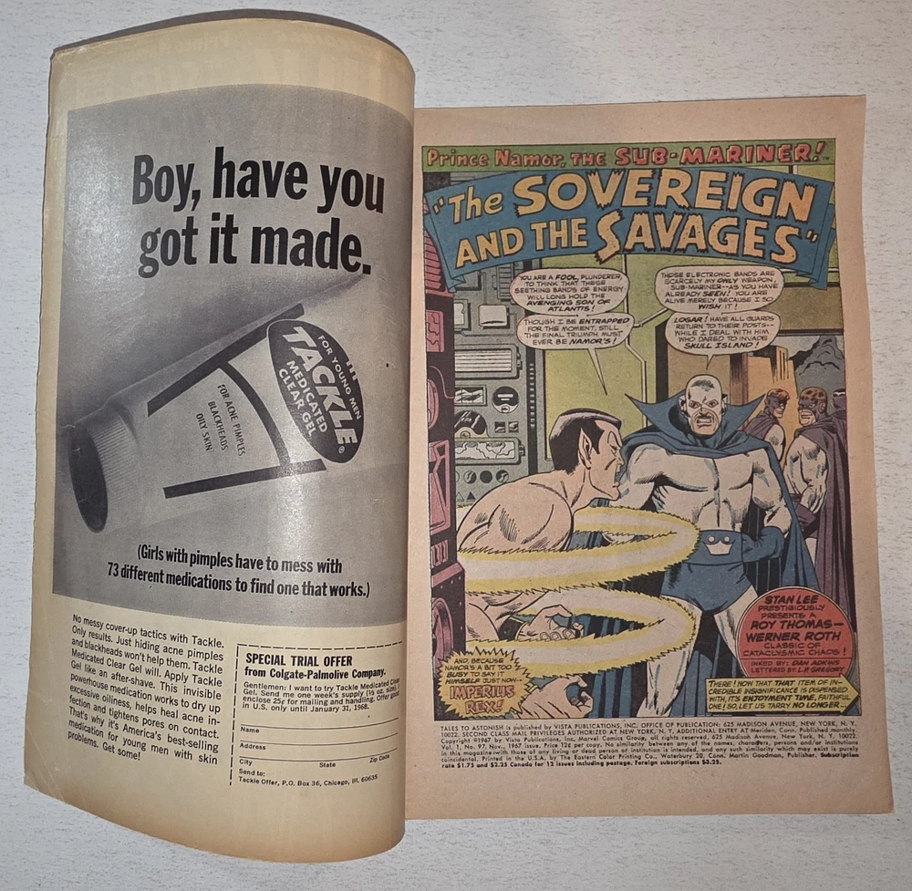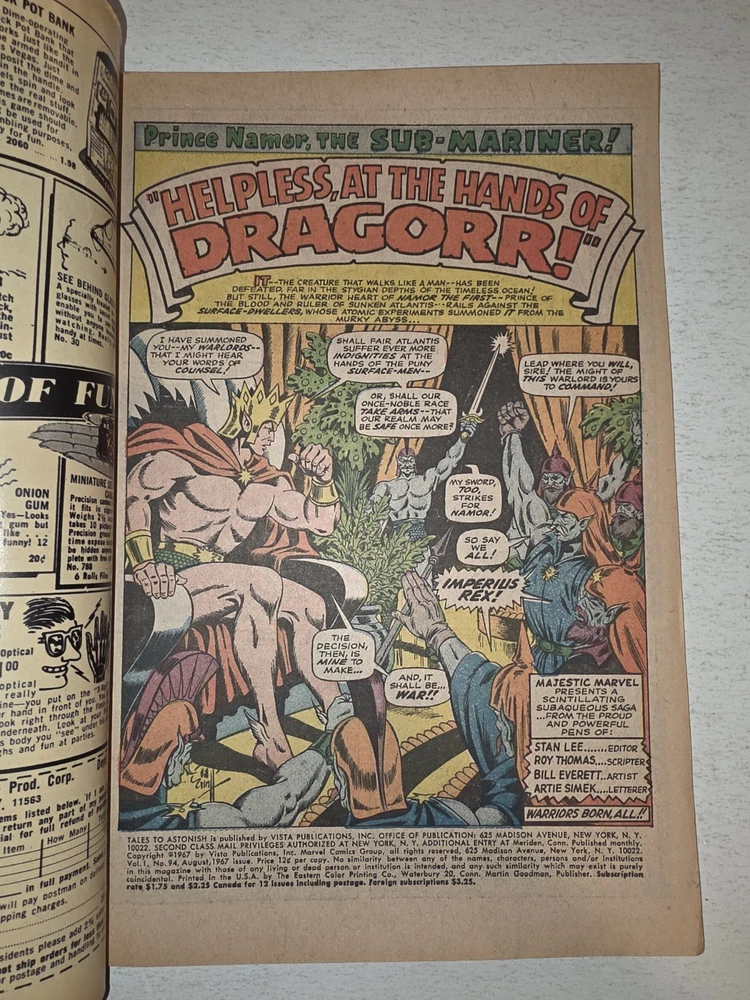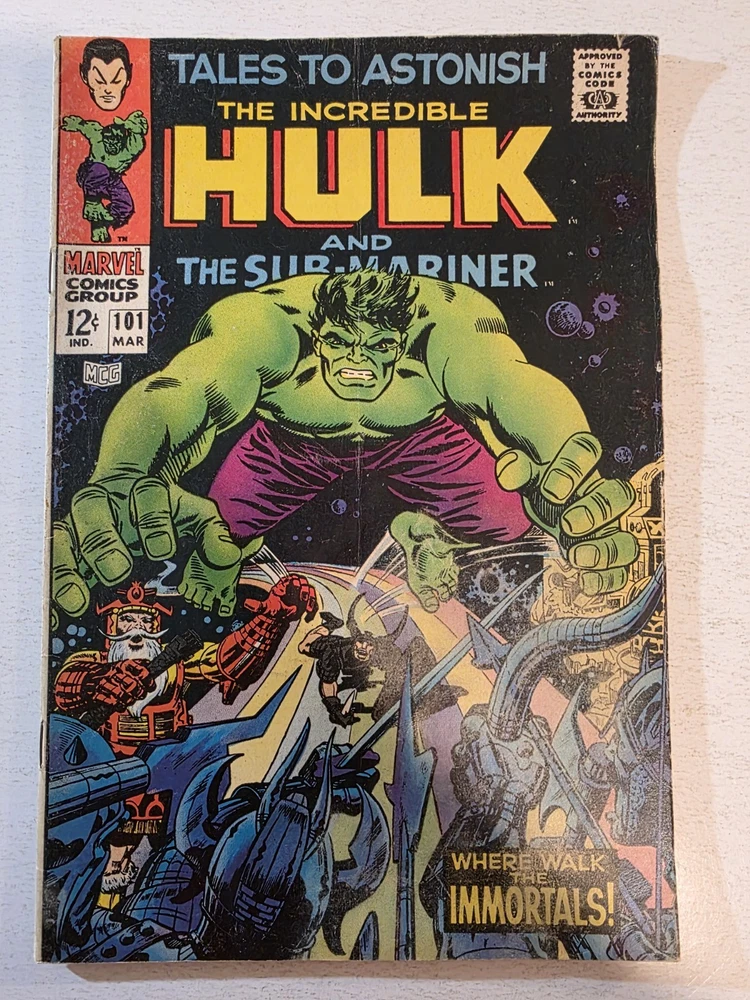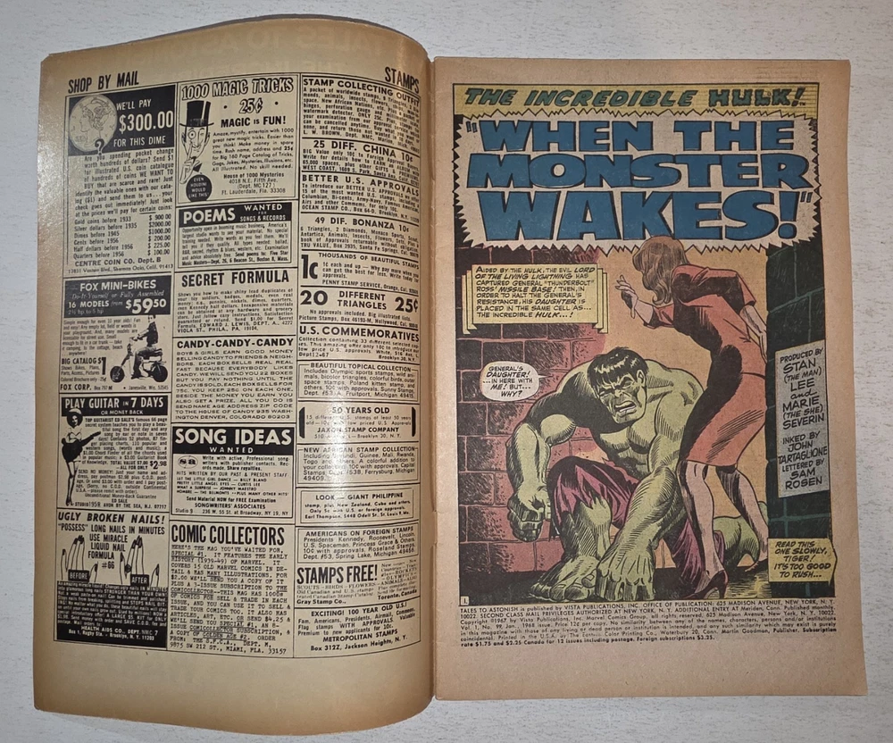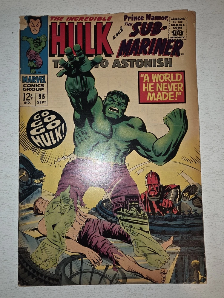 The product is a vintage comic book lot titled Tales to Astonish #90-101* from the Silver Age era in 1966, featuring the first appearance of the character Abomination (Emil Blonsky) and Dragorr. Illustrated by artists like Dick Ayers and Jack Kirby, with a cover by Bill Everett, this comic is part of the Atlas/Marvel universe and falls under the Horror & Sci-Fi genre. Published by Atlas Comics and intended for a general audience, this collectible single issue is a valuable addition to any comic book enthusiast's collection. * All Complete, Interiors are stellar, staples intact. including #90 VG/FN 1ST APP OF ABOMINATION #94 VF 1st Appearance of DRAGORR #95 VG/FN 1st App Dr Walter Newell Stingray #96 FN/VF SKULL ISLAND #97 FN+ Legion of the living Lightning #98 VG- 3" tear right center cover #99 FN+ 2" tear back center cover #100 VF #101 FN LAST ISSUE - Bagged and boarded - Shipped with Gemini packing to insure no damage during shipping - Usps Priority, insured Check out our other Silver Age Classics and 1000s of other comics in our store We combine shipping