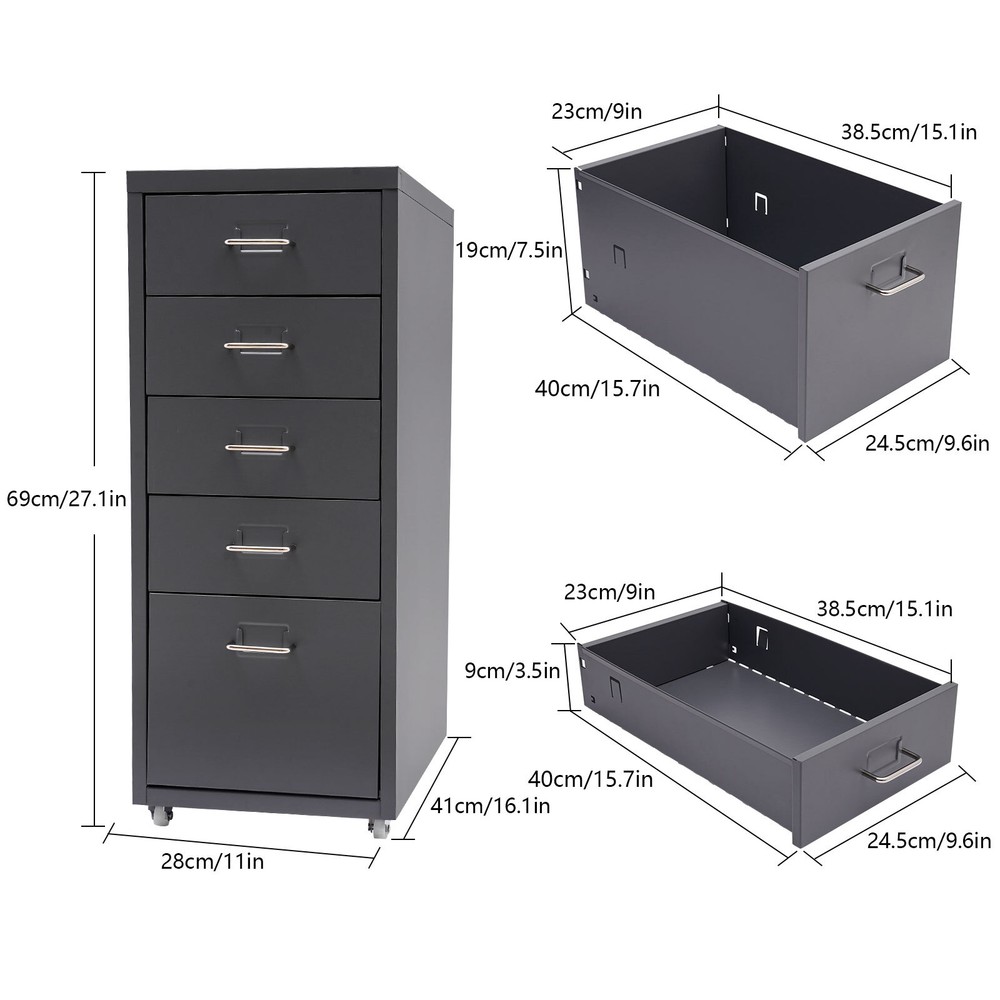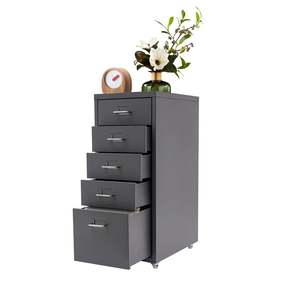 Specification Color: Grey Style: Modern Shape: Rectangular Number of Drawers: 5 Assembly Required: Yes Installation Type: Free Standing Process: Electrostatic Spraying Material: Cold Rolled Steel, Aluminum Alloy, Rubber Each Tier Max. Load Capacity: About 5kg/11.02lbs Product Size: 28*41*69cm/11*16.1*27.1in Large Drawer Size: 40*24.5*19cm/15.7*9.6*7.5in Small Drawer Size: 40*24.5*9cm/15.7*9.6*3.5in Drawer Internal Area: 38.5*23cm/15.1*9in Package Included 1* 5-Drawer Storage Cabinet Other Accessories for Assembly Metal Storage Cabinet Tall Garage Cabinet with Wheel with 5Doors for Home Office Description Maintaining cleanliness and order in our lives can have a positive impact on our mood and overall well-being. Our storage cabinet is crafted with high-quality cold-rolled steel and aluminum alloy , providing ample storage space while boasting a beautiful and functional design. With this cabinet, you can effortlessly and efficiently organize your belongings, leaving you feeling structured and at ease. Come and take it to enjoy a tidy life. Key Features Sturdy and Durable: This product is mainly made of high-quality cold-rolled steel and aluminum alloy, with electrostatic spraying treatment, it is not easy to rust, corrode, deform, or fade. Excellent Organizer: This set of 4 small drawers and a large drawer can sort and store data cables, kinds of files, and other daily essentials to create a cleaner, tidier office and home environment. Improve Space Utilization: This product occupies an area of 11*16.1 inches, so it can be placed in relatively narrow spaces, such as the gap between the bookshelf and the wall, making full use of your house space. Easy to Access: The tag slot on each drawer allows you to conveniently label and sort items in each drawer, which also ensures easy access to your items. Minimalist Style: The white color scheme combines a rectangular shape and simple lines to create a minimalist aesthetic and reveal a strong modern charm, adding a touch of refinement to your office . Stable Construction: The thickened material and rectangular structure give it excellent stability and a load capacity of about 11.02 pounds each tier , meeting your needs for storing various items without tipping o ver. Effortless Clean: Thanks to its smooth surface and simple construction, you can wipe it clean with a damp rag. Ideal Gift: Thanks to its practicality, it will make a fine gift for family, friends, and loved ones on Christmas, Father's Day, Mother's Day, birthdays, anniversaries, and holidays. Protective Package: To prevent the product from being damaged during transportation, we packed it with foam to protect your products to the maximum extent possible. Details Smooth Handles: It helps you open and close the drawer conveniently while conforming to the design of the cabinet. Durable Buckles: The drawers have anti-falling and anti-sinking buckles on both sides of the tail, which can prevent the drawers from sinking, tilting, or falling. Rubber Wheels: They allow for easy movement of this product while avoiding scratching the floor and generating noise. Application It can be placed in the kitchen, bedroom, living room, office, study, and more to store snacks, stamps, sticky notes, paper clips, scissors, bills, pens, pencils, business cards, notepads, cosmetic collections, toiletries, jewelry, hair accessories, crafts, etc. Specification Color: Grey Style: Modern Shape: Rectangular Number of Drawers: 5 Assembly Required: Yes Installation Type: Free Standing Process: Electrostatic Spraying Material: Cold Rolled Steel, Aluminum Alloy, Rubber Each Tier Max. Load Capacity: About 5kg/11.02lbs Product Size: 28*41*69cm/11*16.1*27.1in Large Drawer Size: 40*24.5*19cm/15.7*9.6*7.5in Small Drawer Size: 40*24.5*9cm/15.7*9.6*3.5in Drawer Internal Area: 38.5*23cm/15.1*9in Package Included 1* 5-Drawer Storage Cabinet Other Accessories for Assembly Notes Please allow the slight color difference caused by the shooting light and 1-3cm error due to manual measurement and make sure you do not mind before ordering. Payment Delivery details Terms of sales About us Contact us Payment We accept ebay payment 。 Fees such as import duties, taxes are not included in the item price or shipping costs. These charges are the buyer's responsibility. Delivery details Shipping: 2-9 working days to: USA Terms of sales We maintain high standards of excellence and strive for hundred percent customer satisfaction. Feedback is very important to us. We hope that you contact us immediately before you give neutral or negative feedback, so that we can address your concerns. It is impossible to address issues if we do not know about them! About us Your satis faction is our ultimate goal. We work hard to earn your trust and future business. Our certified technicians have tested each item before shipping. The unit comes with 1 year limited warranty on all manufacturing defects. a) If you receive a defective item, you may return it or ask for a discount. Please contact us within 14 days after you receive the package. b) What you returned must be intact and in its original packaging as re? u. Customer is responsible for shipping costs of the returned item. c) We will cover the cost of shipping back t with the shipping rate indicated in the registration page. We will send you a new unit or refund the full payment you paid. Thank you. Contact us Business Hour Business Hour: Monday To Friday: 8:30 AM to 5:00 PM (Beijing China time) Due to time zones, our reply to your questions may not be immediately. But within above working time, we will reply your email within 24 hours. If it's non-workdays, please kindly be patient and wait till Monday. Please contact us with ebay message. Please feel free to contact us if you have any questions. Monday To Friday: 8:30 AM to 5:00 PM (Beijing China time) Due to time zones, our reply to your questions may not be immediately. But within above working time, we will reply your email within 24 hours. If i
