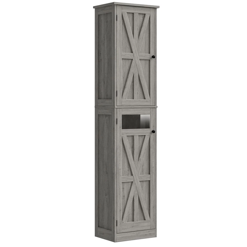Tall Bathroom Cabinet, Slim Bathroom Storage Cabinet with Adjustable Shelves and 2 Doors, Narrow Floor Storage Cabinet for Bathroom, Kitchen, Living Room, Rustic Grey 【Clear Acrylic Door & Farmhouse Design】The combination of farmhouse and acrylic elementsis unique and charming. It not only retains the simplicity and naturalness of the farmhouse but also adds a sense of modernity. The acrylic door is translucent , allowing you to easily view the items inside the cabinet and easy access. It is a perfect combination of fashion and practicality. 【Perfect for Small Spaces】Sized at 11.69"D x 15.75"W x 67.80"H, this narrow yet tall cabinet makes full use of vertical space, increases storage capacity, and saves space for the bathroom. It is very suitable for narrow spaces. 【Multifunctional Storage Cabinet】This versatile cabinet is simple and elegant with extremely strong storage capacity. It is an excellent choice for uses such as bathroom cabinets and kitchen cabinets. Its multifunctional design can be easily integrated into any scene and perfectly blends with bathrooms, living rooms, and kitchens, adding convenience and beauty to home life. 【Flexible Storage Space】This bathroom cabinet has two adjustable shelves that can be freely adjusted according to the size of different items to meet different storage needs. The flexible storage space design makes storage no longer restricted. Whether it is small items or large items, a suitable storage location can be found. 【Sturdy, Stable, and Safe】This tall bathroom cabinet adopts a high-quality solid wood reinforced base and has better stability and support capacity. The anti-tipping accessories effectively avoid the occurrence of potential dangers and provide reliable protection for you and your family. 【Easy to Assemble】Its assembly is very simple. products will all include instructions. All parts have detailed labels and step-by-step instructions on the instructions. In just about 40 minutes, you can get a practical floor storage cabinet. 【Outstanding Client Service】No matter if you encounter any problems when installing the product or using the product, please feel free to contact us at any time. Our excellent customer service team will provide you with a satisfactory solution within 24 hours! Let you have a pleasant shopping experience.