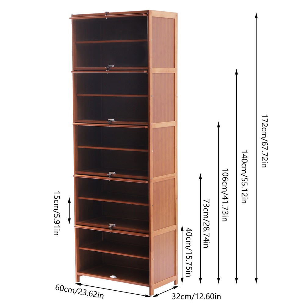 Mounting: Free Standing Gross Weight: 16.22kg/35.75lbs Item Weight: 15kg/33.06lbs Number of Shelves: 10 Item Height: 172cm Product Size: 60*32*172cm/23.62*12.60*67.72in Material: Nan Bamboo and Laminate Doors Included: Yes Bearing Weight of Each Tier: 20kg/22lbs UPC: Does not apply MPN: N/A Shape: Rectangular Capacity: 16-20 pairs Assembly Required: Yes Number of Items in Set: N/A Type: Shoe Cabinet Item Depth: N/A Style: Contemporary Color: Brown Each Tier Height: 15cm/5.91in Model: N/A Mount Type: Floor Mount Finish: Varnished Brand: Unbranded Features: N/A Item Length: 60cm Item Width: 32cm Packing Size: 179*36.5*12.5cm/70.47*14.37*4.92in gtin13: Does not apply