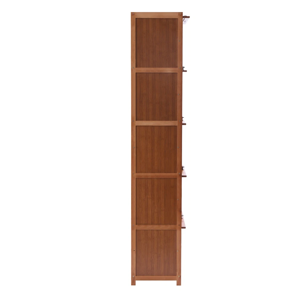 Tall Brown Bamboo Shoe Cabinet Entryway Floor Mount Rack