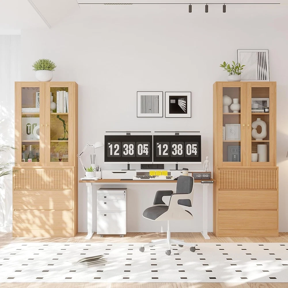 This stylish wood bookcase cabinet is a perfect blend of function and modern design. The natural wood grain and clean lines add elegance to any room, while the tempered glass doors keep items dust-free yet visible. Sturdy and spacious, it’s great for displaying books, decor, or kitchen essentials. Easy to assemble and versatile enough for living rooms, offices, or dining areas—definitely a great addition to any home!
