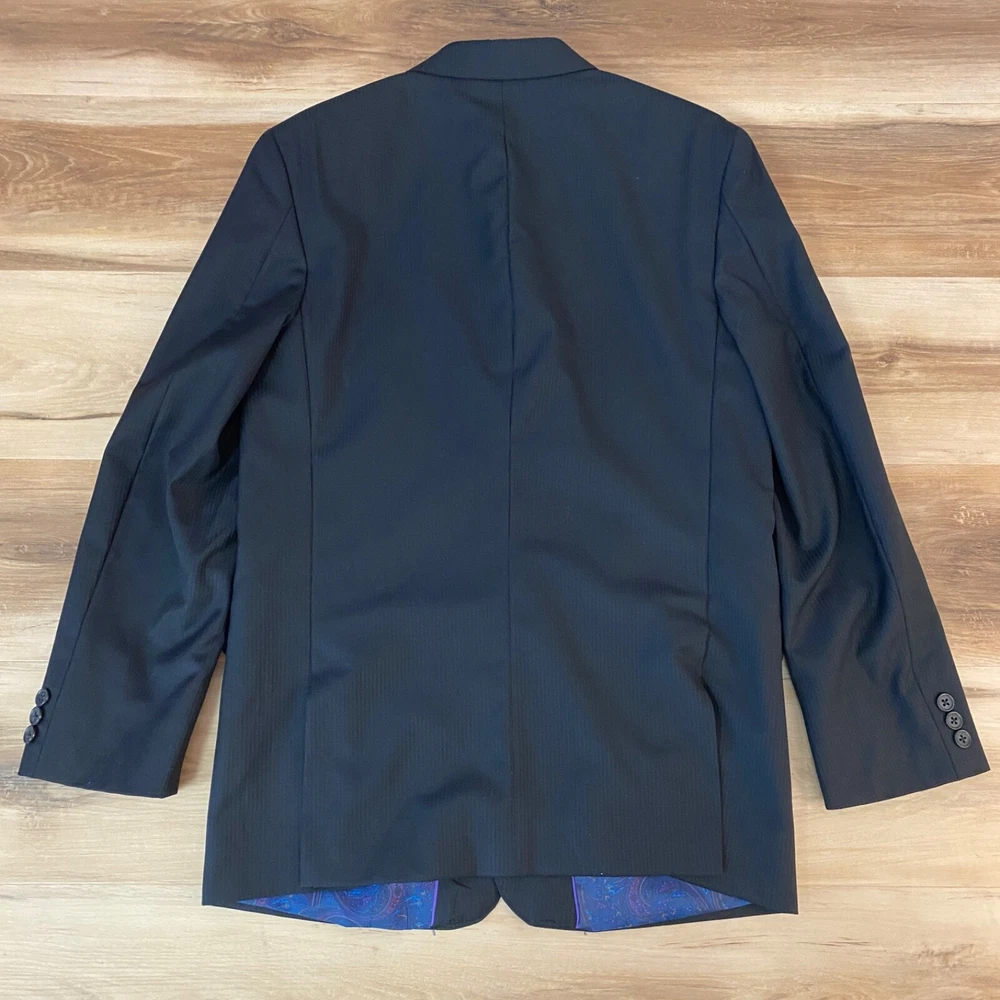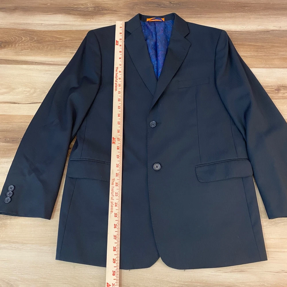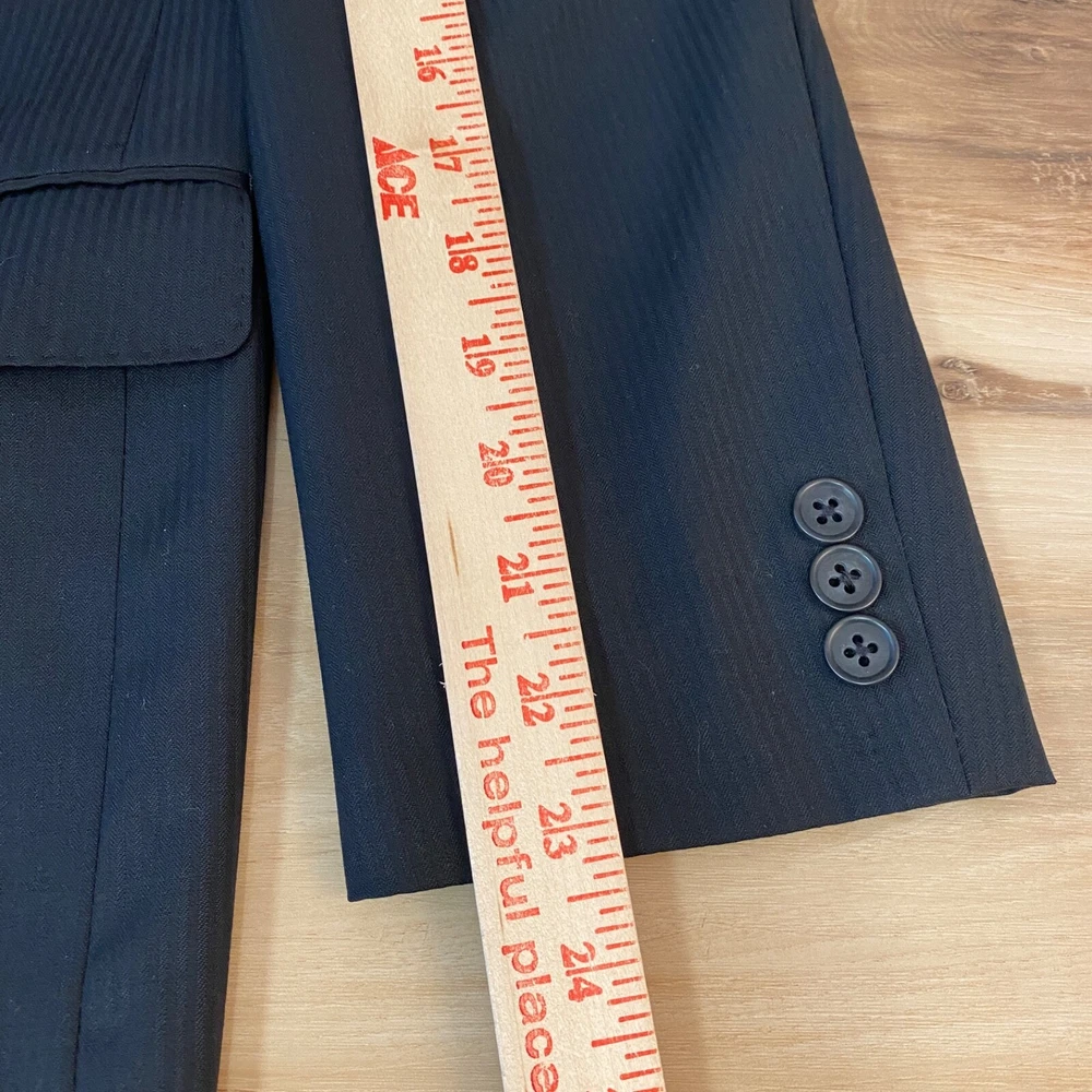 Chest Size: 36 Jacket Front Button Style: Two-Button Vintage: No Material: Wool Size: 20 Pattern: Solid Jacket Lapel Style: Notch Department: Boys Garment Care: Dry Clean Only Handmade: No Lining Material: Polyester Set Includes: Jacket Jacket/Coat Length: Regular Fit: Classic Style: Pant Suit Brand: Tallia Occasion: Business, Formal Color: Black Number of Pieces: 1 Piece Jacket Cut: Single-Breasted Seller Notes: “Great Condition. There is a subtle striped pattern, but looks solid black from a distance.” Type: Blazer