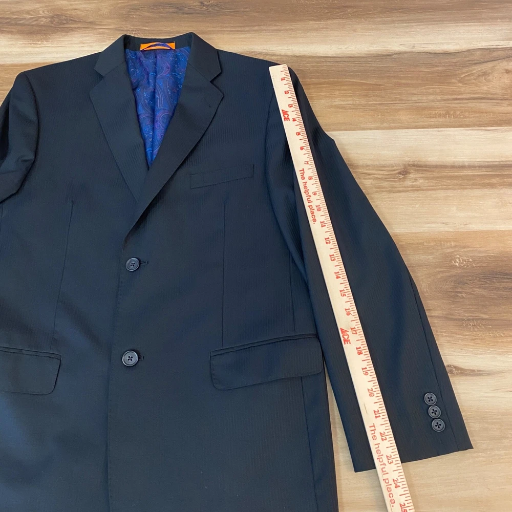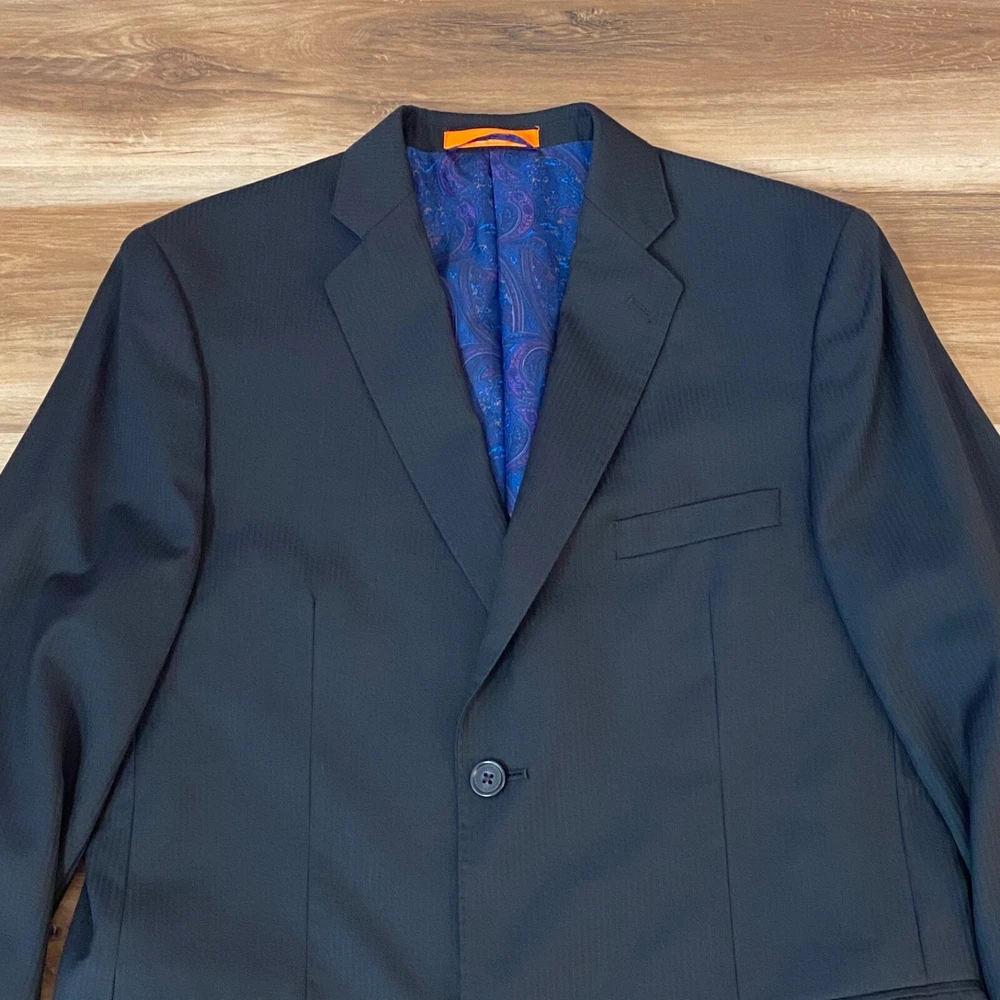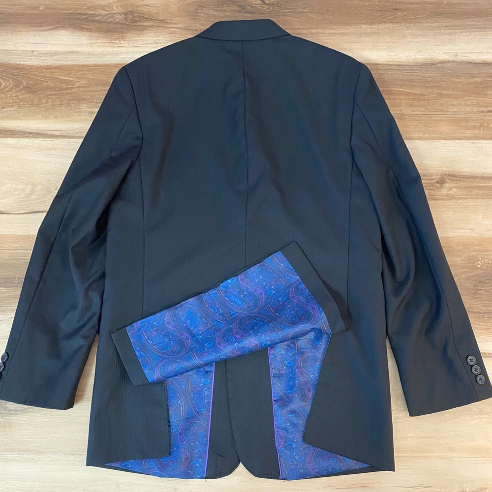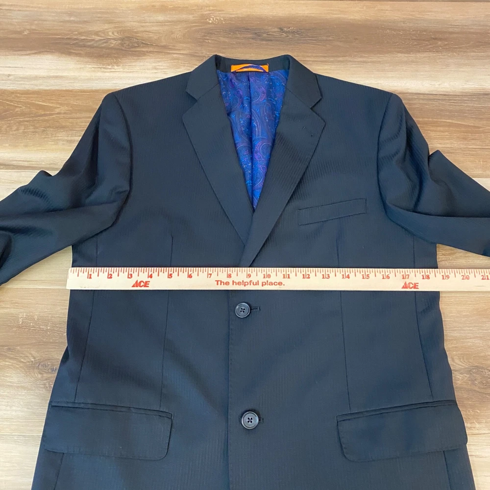 Chest Size: 36 Jacket Front Button Style: Two-Button Vintage: No Material: Wool Size: 20 Pattern: Solid Jacket Lapel Style: Notch Department: Boys Garment Care: Dry Clean Only Handmade: No Lining Material: Polyester Set Includes: Jacket Jacket/Coat Length: Regular Fit: Classic Style: Pant Suit Brand: Tallia Occasion: Business, Formal Color: Black Number of Pieces: 1 Piece Jacket Cut: Single-Breasted Seller Notes: “Great Condition. There is a subtle striped pattern, but looks solid black from a distance.” Type: Blazer