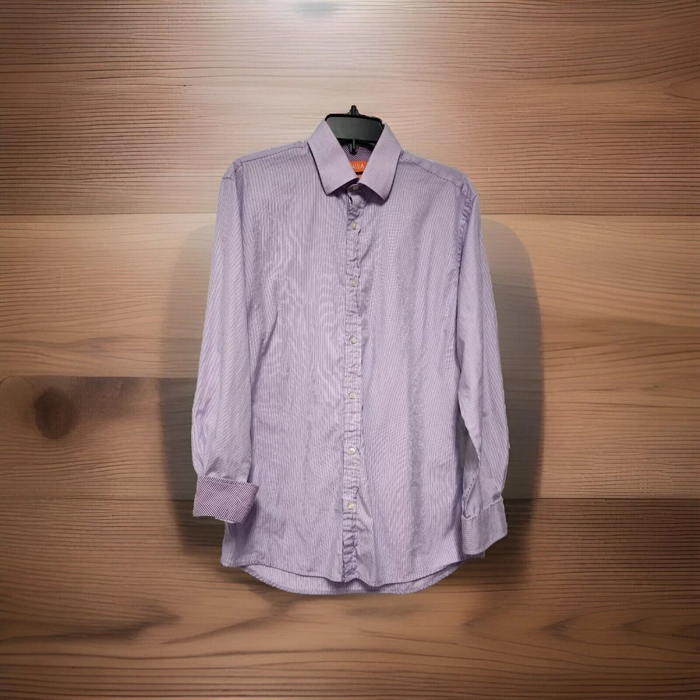 Tallia Mens Slim Fit Dress Shirt Purple Button Up Medium 15 1/2 Long Sleeve
