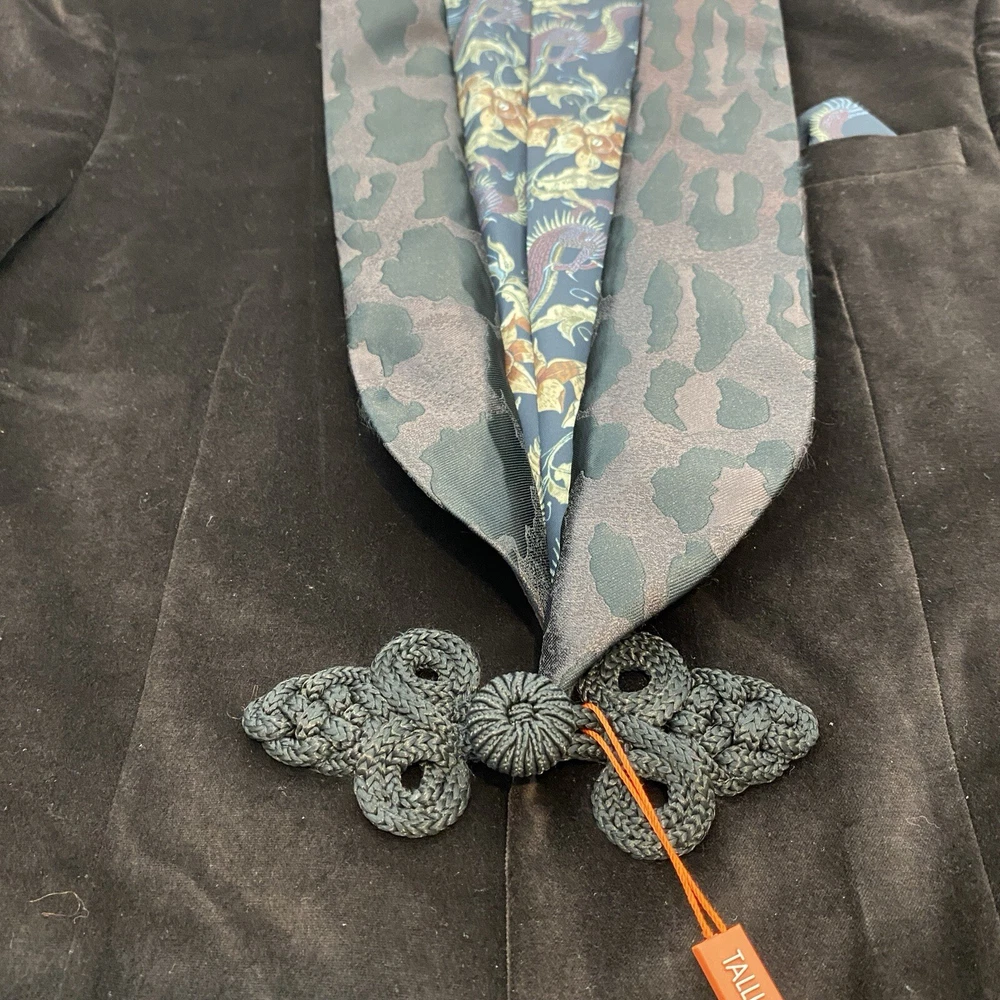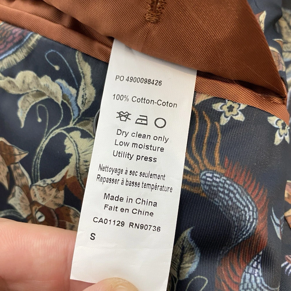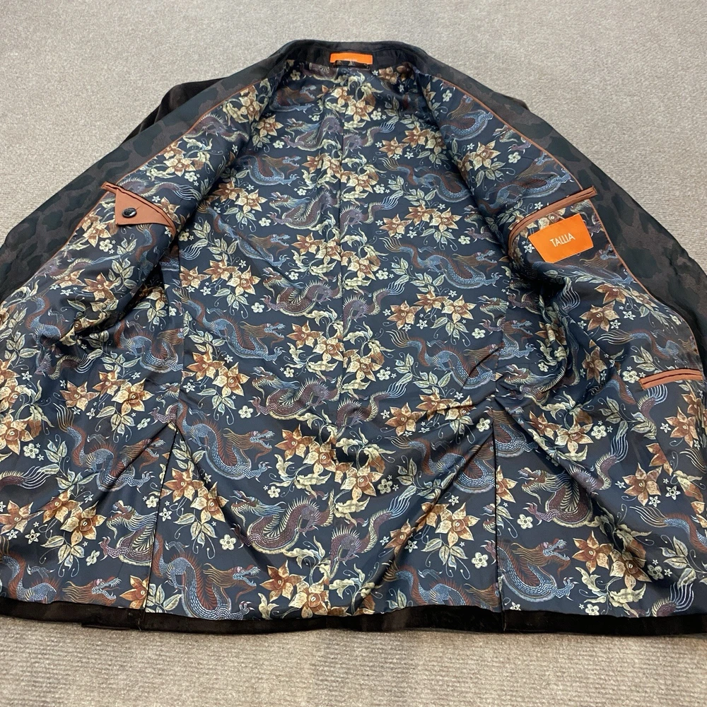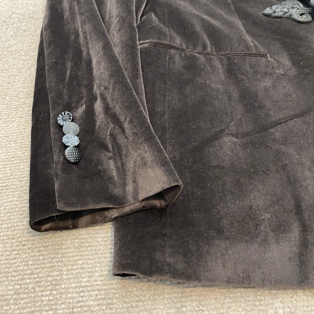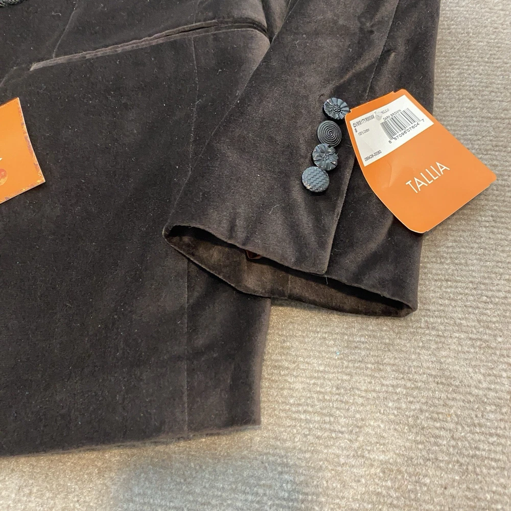 Brand: Tallia Jacket Front Button Style: One-Button Jacket/Coat Length: Regular Pattern: Solid Vintage: No Material: Cotton Theme: Modern Size: S Season: Fall, Spring, Summer, Winter Front Type: Flat Front Personalization Instructions: No Occasion: Casual Color: Brown Department: Men Handmade: No Garment Care: Dry Clean Only Size Type: Regular Features: Inner Pockets Number of Pieces: 1 Piece Fabric Type: Velvet Type: Blazer Style: Tuxedo Personalize: No