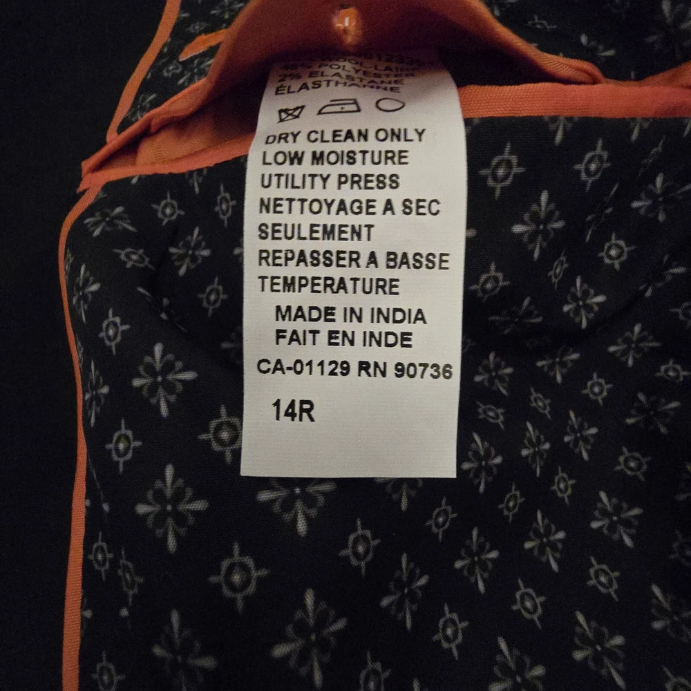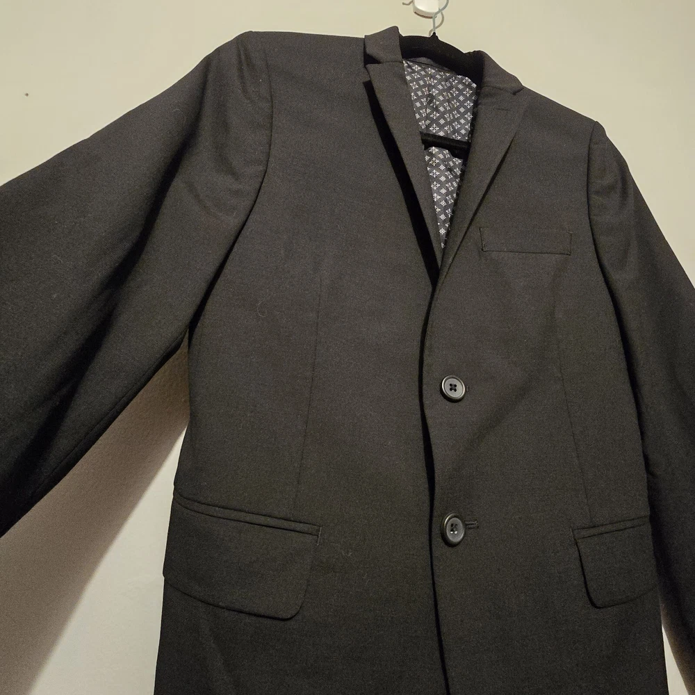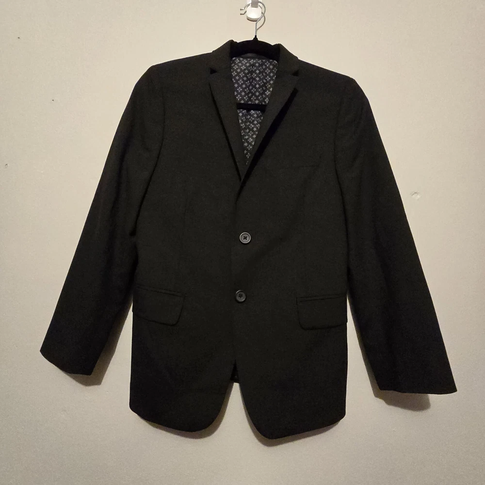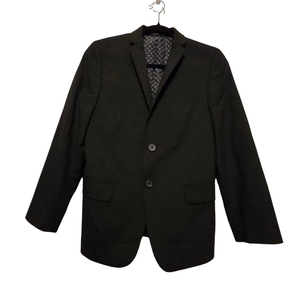 Front Type: Flat Front Country/Region of Manufacture: India Fabric Type: Knit Jacket Vent Style: Double Vented Sleeve Length: Long Sleeve Jacket Sleeve Button Style: Three-Button Number of Pieces: 1 Piece Color: Gray Leg Style: Straight Brand: Tallia Model: Suit Pants Pattern: Solid Jacket Front Button Style: Two-Button Garment Care: Dry Clean Only Material: Polyester, Spandex, Wood Season: Fall, Spring, Summer, Winter Jacket Cut: Single-Breasted Theme: Classic Features: Inner Pockets, Lined Department: Boys Fit: Regular Type: Suit Jacket Size: 14R Occasion: Business, Christening, Formal, Wedding, Workwear Set Includes: Jacket Vintage: No Lining Material: Polyester Style: Pant Suit Jacket/Coat Length: Regular Jacket Lapel Style: Notch