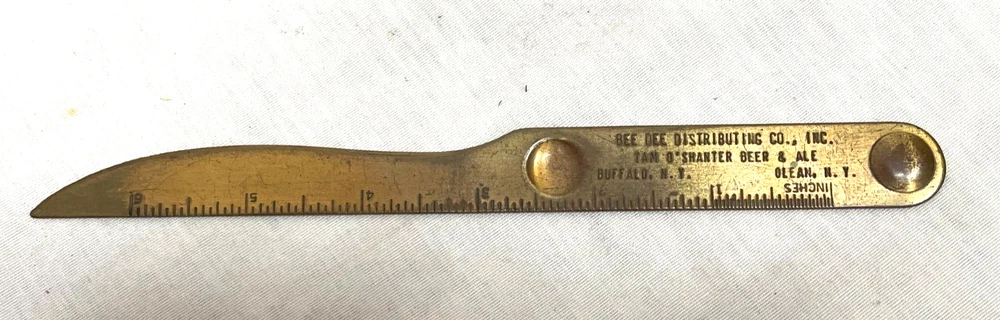 Up for sale are these two vintage Tam O' Shanter collectibles. First is a letter opener/rule from Bee Dee Distributing handling Buffalo and Olean, NY. Second item is a cap lifter from American Brewing, Rochester, NY . Both items in VG condition with no bends or breaks. Please view pictures provided as item is selling as seen. These items come from a smoke-free home. Buyer will not be disappointed. All items shown in photos are the exact one buyer will receive. Please email me with any questions BEFORE BUYING and I will try to reply asap. Thank you for looking. Check my feedback and buy with confidence!