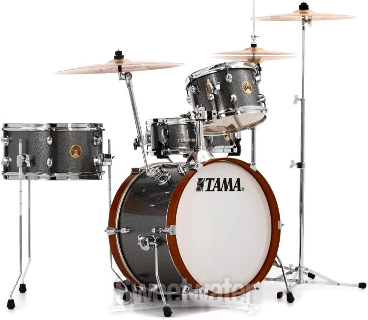 Retro-informed Travel Kit The TAMA Club-Jam brings throwback vibes and old-school cool to your stage or session. The 6-ply poplar/mersawa shells, which are both shallow and compact, are quick to speak, focused, lively, and easy gigging. Retro features include a kick-mounted cymbal boom, antique round badges, and curved bass drum spurs. The Club-Jam's finish is nicely offset by a pair of natural finished wood bass hoops. An optional bag set is available; not included. Hybrid poplar/mersawa shells Six plies of poplar and mersawa bring a warmth and liveliness to the Club-Jam's compact shells that may shock your senses. Shells are crowned with triple-flanged hoops for a classic, fat attack and antique round badges — a rarity from TAMA — for a hip throwback look. Whether you play swing or hip-hop, rock or funk, the Club-Jam from Sweetwater is sure to scratch an itch you won't find in other kits.TAMA Club-Jam Sweetwater is an Authorized Tama Dealer Genuine New Item Sweetwater's 2-year warranty Tama Club-JAM LJK48S 4-piece Shell Pack with Snare Drum - Galaxy Silver 4-piece Poplar/Mersawa Shell Pack with 10" Tom, 14" Floor Tom, 18" Bass Drum, and 13" Snare - Galaxy Silver Retro-informed Travel Kit The TAMA Club-Jam brings throwback vibes and old-school cool to your stage or session. The 6-ply poplar/mersawa shells, which are both shallow and compact, are quick to speak, focused, lively, and easy gigging. Retro features include a kick-mounted cymbal boom, antique round badges, and curved bass drum spurs. The Club-Jam's finish is nicely offset by a pair of natural finished wood bass hoops. An optional bag set is available; not included. Hybrid poplar/mersawa shells Six plies of poplar and mersawa bring a warmth and liveliness to the Club-Jam's compact shells that may shock your senses. Shells are crowned with triple-flanged hoops for a classic, fat attack and antique round badges — a rarity from TAMA — for a hip throwback look. Whether you play swing or hip-hop, rock or funk, the Club-Jam from Sweetwater is sure to scratch an itch you won't find in other kits. TAMA Club-Jam 4-piece Shell Pack Features: A throwback kit that travels easy Inspired by jazz kits of the past Shallow, compact sizes are quick and responsive 6-ply, 7mm poplar/mersawa shells speak with authority Natural finished wood bass hoops Kick-mounted cymbal boom Antique round badges Curved bass spurs Shell sizes (depth x diameter): 7" x 10" tom, 7" x 14" floor tom, 12" x 18" bass drum, 5" x 13" snare Specification Detail Finish Galaxy Silver Wrap Configuration Shell Pack with Snare Drum Number of Drums 4 Snare (Depth x Diameter) 5" x 13" Mounted Toms (Depth x Diameter) 7" x 10" Floor Toms (Depth x Diameter) 7" x 14" Bass Drums (Depth x Diameter) 12" x 18" Shell Material Poplar/Phoenix Tree Hybrid Tom Holders 1 x Single Tom Holder RETURN INFORMATION We want you to be completely happy with your purchase from Sweetwater. If you are not satisfied with your product, you may return it for a refund of the purchase price within 30 days. If your purchase was eligible for Free Shipping, the shipping cost will be deducted from your credit or refund. Returns must be in the complete and original packaging with all accessories and complete documentation (Owner's Manual, warranty card, quick start guides, etc.), show no signs of wear or use, and include a Return Authorization number or be subject to a restocking fee.