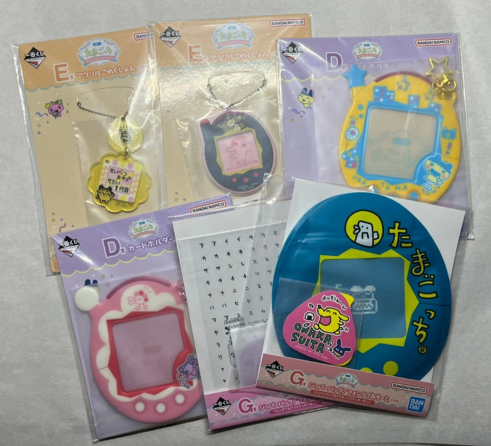 Tamagotchi Goods Lot 5 - Ichiban Kuji Prizes - Keychain, Washcloth, Bags, etc 2 - Washcloths 2 - Keychains 2 - Card holders 1 - Small zipper bag type 1 - Katakana phone case stickers Brand new items. Lot is sold as is. Wonderful addition to any collection or as a gift. Kept in clean, dry, smokeless home. Kept out of direct sunlight. Buyer accepts all responsibilities of item after purchase and acknowledges the age and state of item in listing. Sales are final, items are sold as is. Payment is required within 48 hours of buying commitment/auction ending date. If payment isn't received, items will be relisted and a case will be opened with Ebay to keep record of the issue. Items will be shipped as soon as payment is received. If you have any questions, please reach out! :)