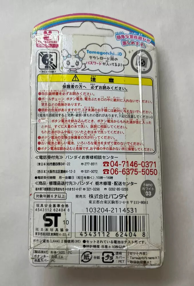 Tamagotchi Nano White Shell Wave 1 Oct 2010 - Bandai Virtual Pet, New, Untested Old item. Box is worn. Item is not tested. Wonderful addition to any collection or as a gift. Box is worn and dirty due to age. Kept in clean, dry, smokeless home. Kept out of direct sunlight. Buyer accepts all responsibilities of item after purchase and acknowledges the age and state of item in listing. Sales are final, items are sold as is. Payment is required within 48 hours of buying commitment/auction ending date. If payment isn't received, items will be relisted and a case will be opened with Ebay to keep record of the issue. Items will be shipped as soon as payment is received. If you have any questions, please reach out! :)