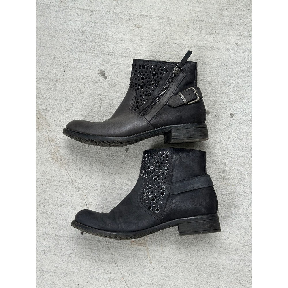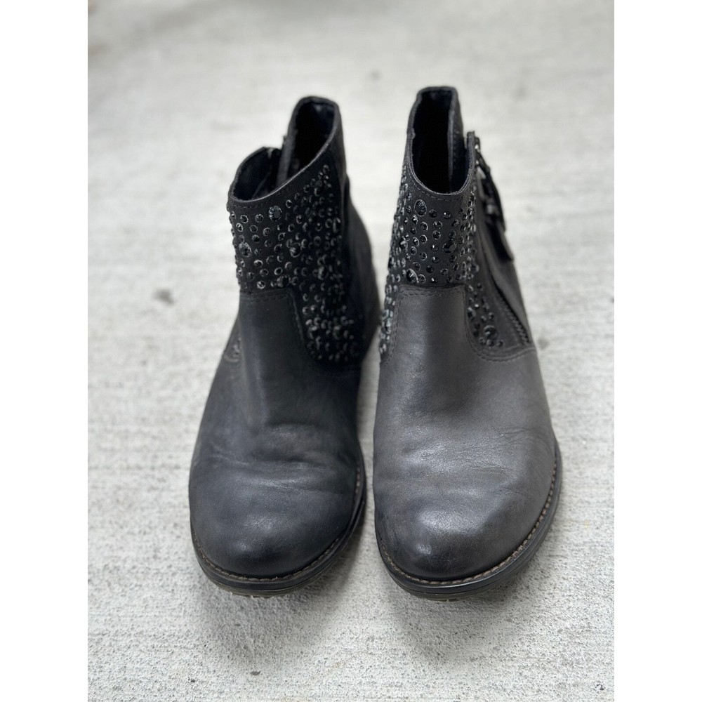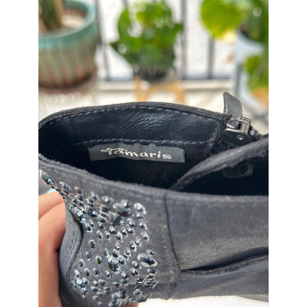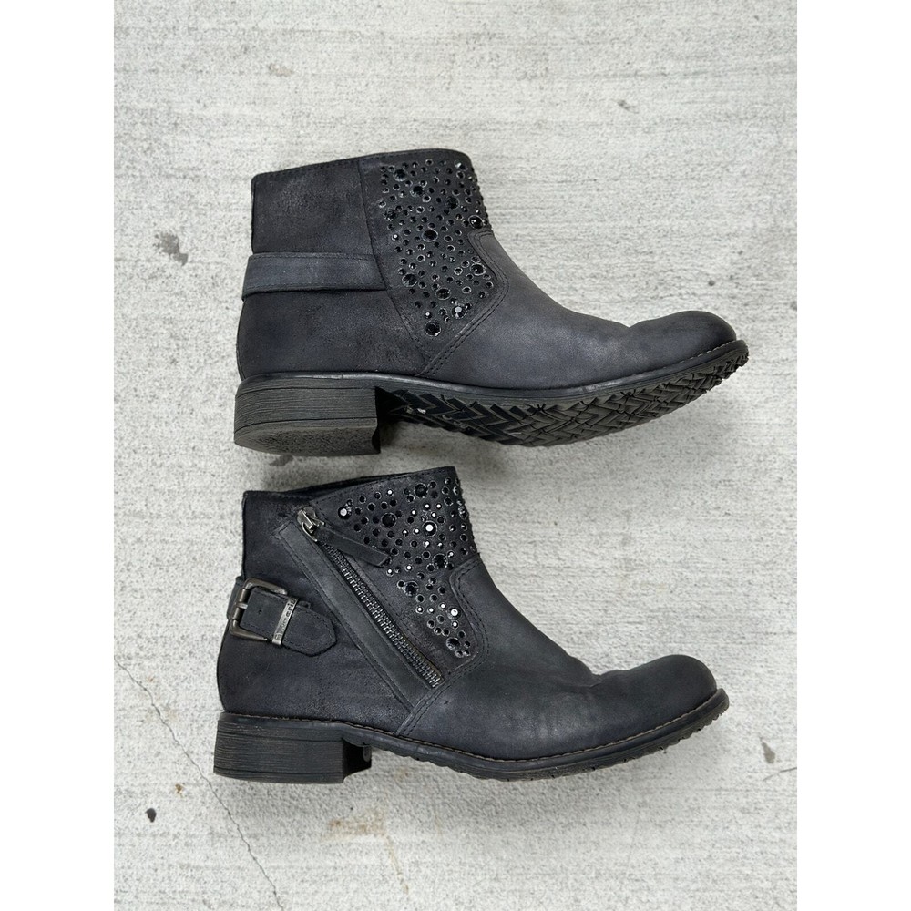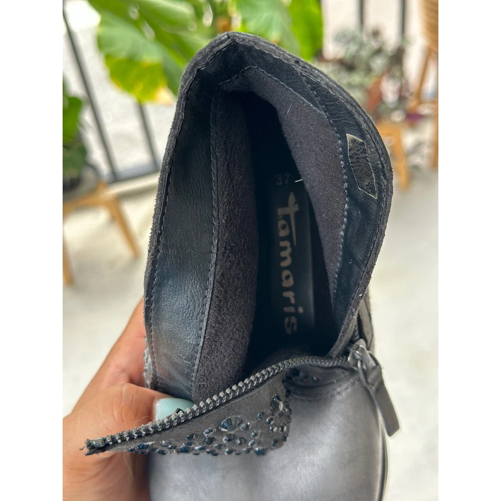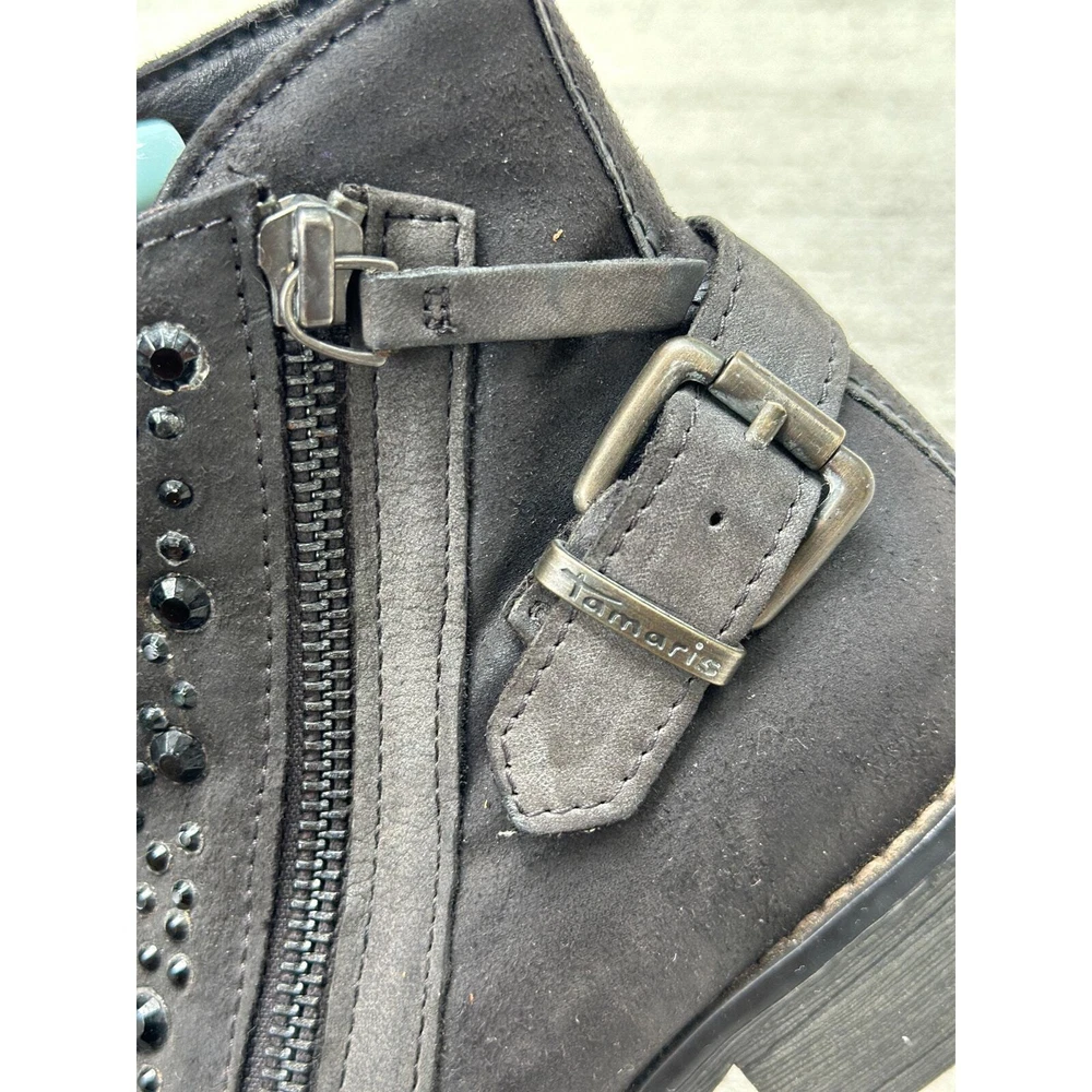 Tamaris Anthracite Distressed Gray Leather Ankle Boot with Studs Rhinestones EU 37