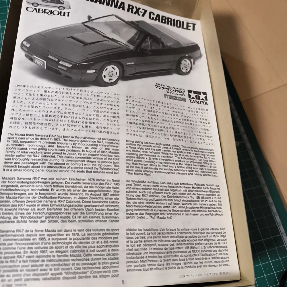 Tamiya 1/24 Mazda Savanna RX-7 Cabriolet Sports Car Series No.74