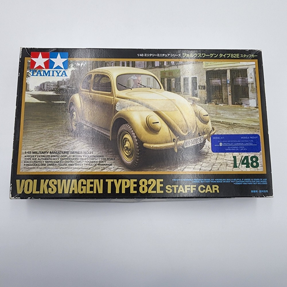 Brand: Tamiya Model: Volkswagen Type 82E Staff Car Scale: 1/48 See photos for further details. Buy with confidence! *Parts pictured are shipped without the kit box, if kit box is pictured it's only to show which kit the part comes from!* *Yes, we combine shipping! Just add the items to your cart and send a request for an invoice!* All orders shipped within 2 business days Please check out my other listings for lots of other model kits! Cars, tanks, airplanes, boats, and more! Visit my store!