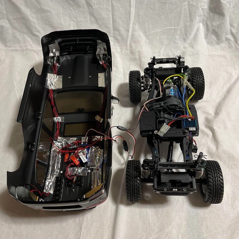 This Tamiya CC-02 Land Cruiser RC is a blast to drive! The LED headlights add a cool realistic touch, and the off-road tires handle smoothly indoors. The black body looks sleek, and the chassis feels sturdy. Perfect for hobbyists who want a well-maintained, lightly used model with great customization potential. Fun and responsive—highly recommend!
