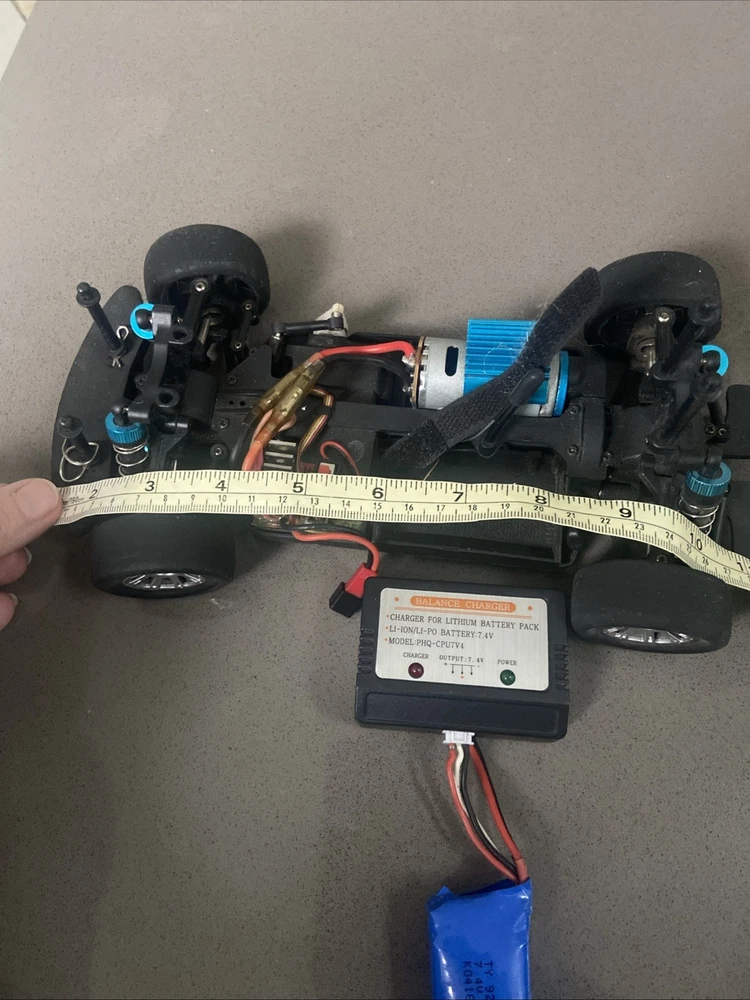 When I google lenses this body, this is the name that came up, but it is not marked anywhere so please review the photos closely and decide for yourself I know nothing about these cars. I pulled it from the Goodwill bins see photos. It looks to be in really good condition but again I’m selling it as is I can tell you the wheels move really nicely when you turn it from side to side and I found this charger right next to it. I don’t know if it belongs to it, but the writing is in Japanese.