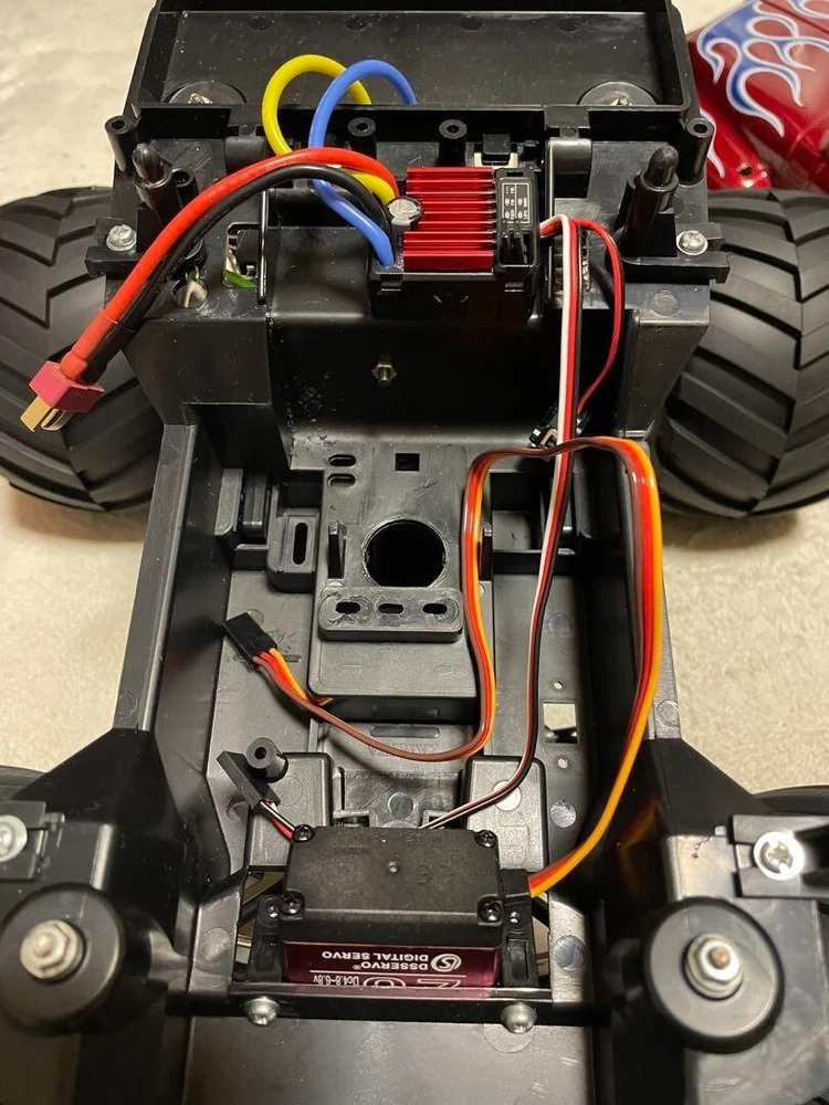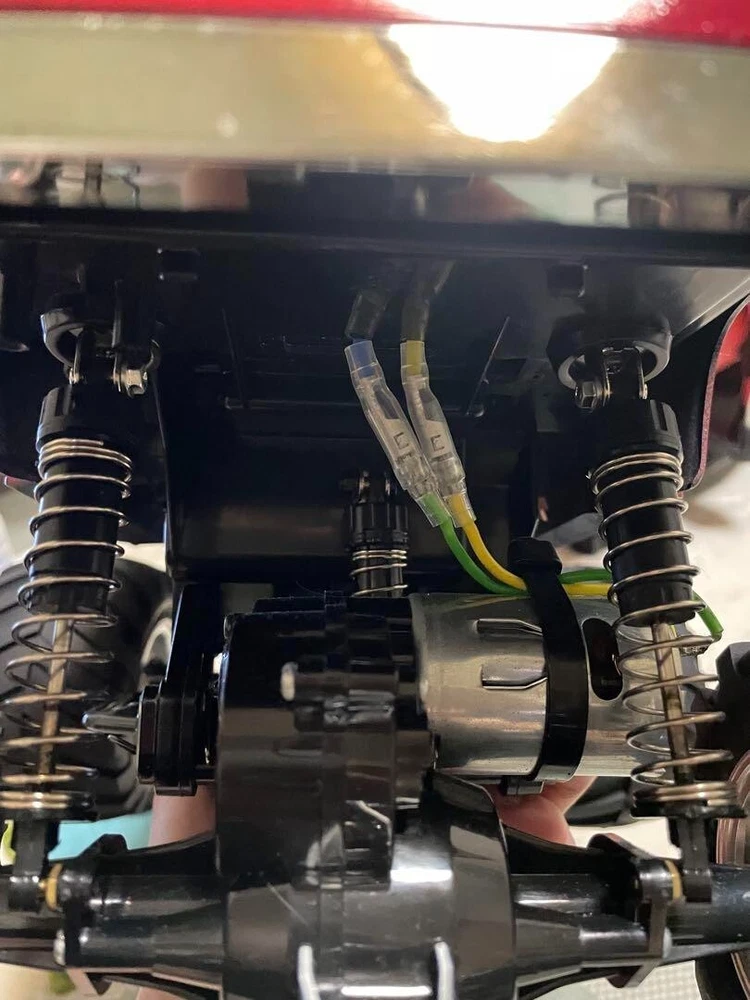 This Tamiya Midnight Pumpkin RC car is a beast! The custom paint job looks amazing with its frost red finish, and the upgraded aluminum wheels and CVA oil dampers give it a premium feel. Everything works perfectly—the new QuickRun 1060 ESC and servo are smooth. Never driven, just tested, so it's in flawless condition. Just add your own receiver, battery, and radio to hit the road. A must-have for RC enthusiasts!