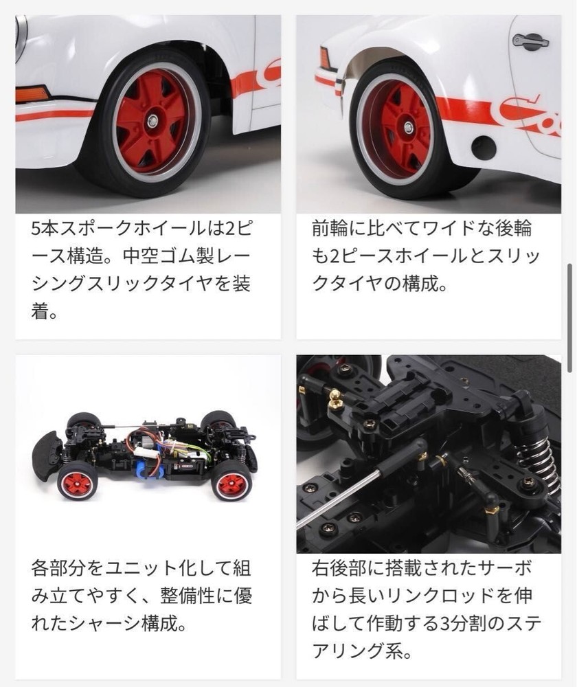 Tamiya Porsche 911 Carrera RSR 2.8 BT-01 Chassis RC Radio Control Kit [A driving experience of a legendary machine that will get you excited] The Porsche 911 has a long history since its birth in 1964, and one of the legendary cars is the Carrera RS 2.7, also known as the "73 Carrera." The body, which realistically reproduces the unique form of the car, including its distinctive ducktail and protruding fenders, is a one-piece molded part made of polycarbonate. The body is painted white and the windows are painted smoked, and the wheel arches are cut and holes are drilled for the body mounts. [Uses the BT-01 chassis, a two-wheel drive with a choice of drive system and wheelbase] The chassis is a multi-purpose 2WD BT-01, which can be selected between rear-wheel drive and front-wheel drive, and in both cases, two types of wheelbase can be selected. You can enjoy light maneuverability and choose the specifications that match the drive system of the actual car. The center frame, which is equipped with the running battery, motor, and RC mechanism, remains the same, but you can choose between front-wheel drive and rear-wheel drive by swapping the final gear and steering linkage. When using rear-wheel drive, you can choose between two types of motor mounting positions: front motor (FR) and rear motor (MR). You can enjoy the difference in maneuverability. In addition, the suspension is designed symmetrically front to back and left to right, and is a four-wheel independent double wishbone with friction dampers. The Porsche 911 Carrera RSR 2.8 is equipped with two-piece wheels with tires of different widths at the front and rear. We recommend the rear motor (MR) and rear-wheel drive, which is closer to the drive system of the actual car. [Basic Specifications] ●Length 457mm, width 204mm, height 138mm ●Wheelbase 251mm (short) ●Tread front: 161mm, rear: 168mm ●Tire width/diameter = front: 27mm/67mm, rear: 32mm/67mm ●Frame = bathtub type ●Drive system = rear-wheel drive ●Differential gear = plastic 4-bevel type ●Steering = 3-piece tie rod type ●Suspension = 4-wheel double wishbone ●Damper = front and rear friction ●Gear ratio = 8.27:1 (when using kit-standard 22T pinion) ●Motor = 540 type ●Speed controller = ESC specification (sold separately) [Items to be purchased separately] ●Finespec 2.4G electric RC drive set ●4 AA batteries for transmitter ★Please see before dealings★ 【Payment】 Please complete payment for auction items within 5 days 【 Shipping 】 ※Usually goods will be shipped within 3 business days after payment is received. ※Time of delivery depend on the country or region. ※Package will be send by JAPAN POST OFFICE or YAMATO or Fedex with tracking number. It will be arrived about 1week ~ 3weeks on average after shipping information is provided. International Buyers - Please Note ・ Import duties, taxes and charges are not included in the item price or shipping charges. These charges are the buyer’s responsibility. ・ Please check with your country’s customs office to determine