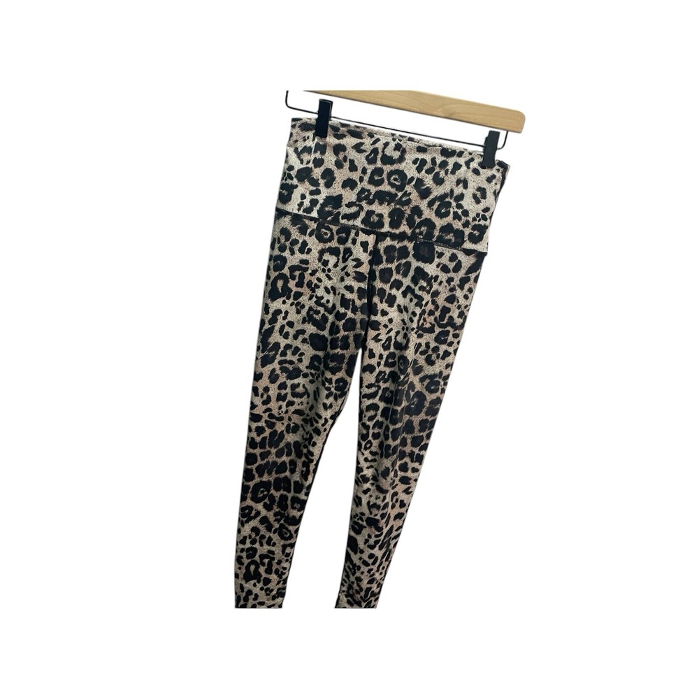 Elevate your activewear game with these stunning cheetah print leggings in tan and black. Designed for women in size XS, these high-rise leggings are perfect for any occasion, from a yoga class to a night out. The cropped style adds a trendy touch, while the leopard theme is sure to turn heads. Made for comfort and style, these leggings are perfect for those who want to look and feel great during their workout. The material is designed to fit snugly and provide support, while the high-rise waist adds a touch of elegance. Whether you're hitting the gym or running errands, these leggings are a must-have. in good condition inseam 24" rise 10" waist across 13" All Measurements Are Approximate Please email us with any questions! ** LIKE THE ITEM BUT NOT THE PRICE, REASONABLE OFFERS ACCEPTED