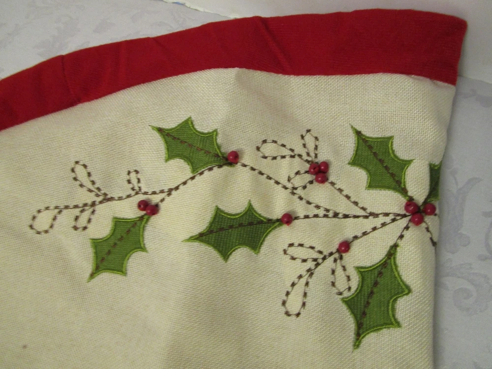 Red and white embroidered 43-inch handmade Christmas tree skirt