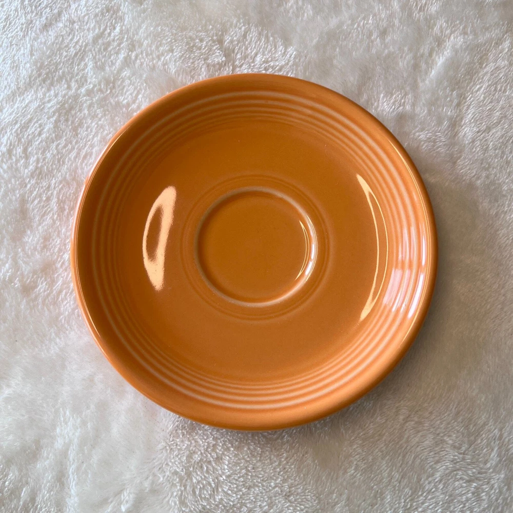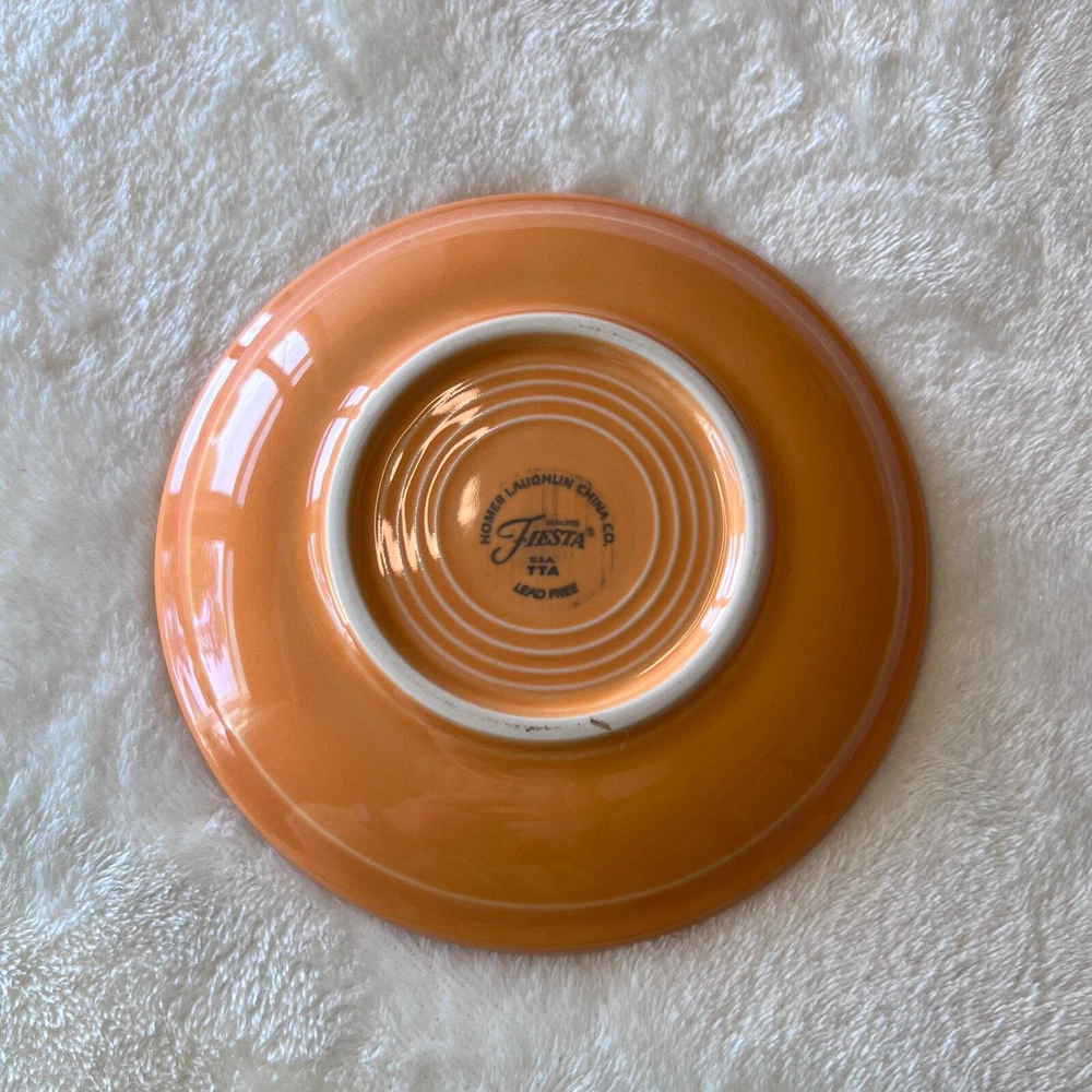 Fiestaware Tangerine (Retired) TeaCup & Saucer Set Color: Tangerine Orange (Retired) Retired Color 2003-2017 Contemporary - Post 86 Homer Laughlin China Co. Fiesta Ware Pottery Classic 7 3/4 oz Tea Cup Height: 2 3/4 in Width: 3 1/2 in Holds 7 Ounces Classic Rim 5 7/8 Inch Saucer Diameter 5 7/8" Height 7/8" Only fits the Cup (#452) Dishwasher, oven, and microwave safe Fully vitrified lead-free china with a color glaze Made in the USA Pre-Owned in Excellent Condition (EUC) *Colors may vary depending on lighting and individual viewing devices Offers Welcomed Bundle Discounts Available Fast Shipping 5 Star Seller Thank you for shopping my closet! Fiestaware, Teacup & Saucer, Fiesta, Retired, Tangerine, Pottery, Collectible, Vintage, Tea Cup, Coffee, Java, Value increases, Collector