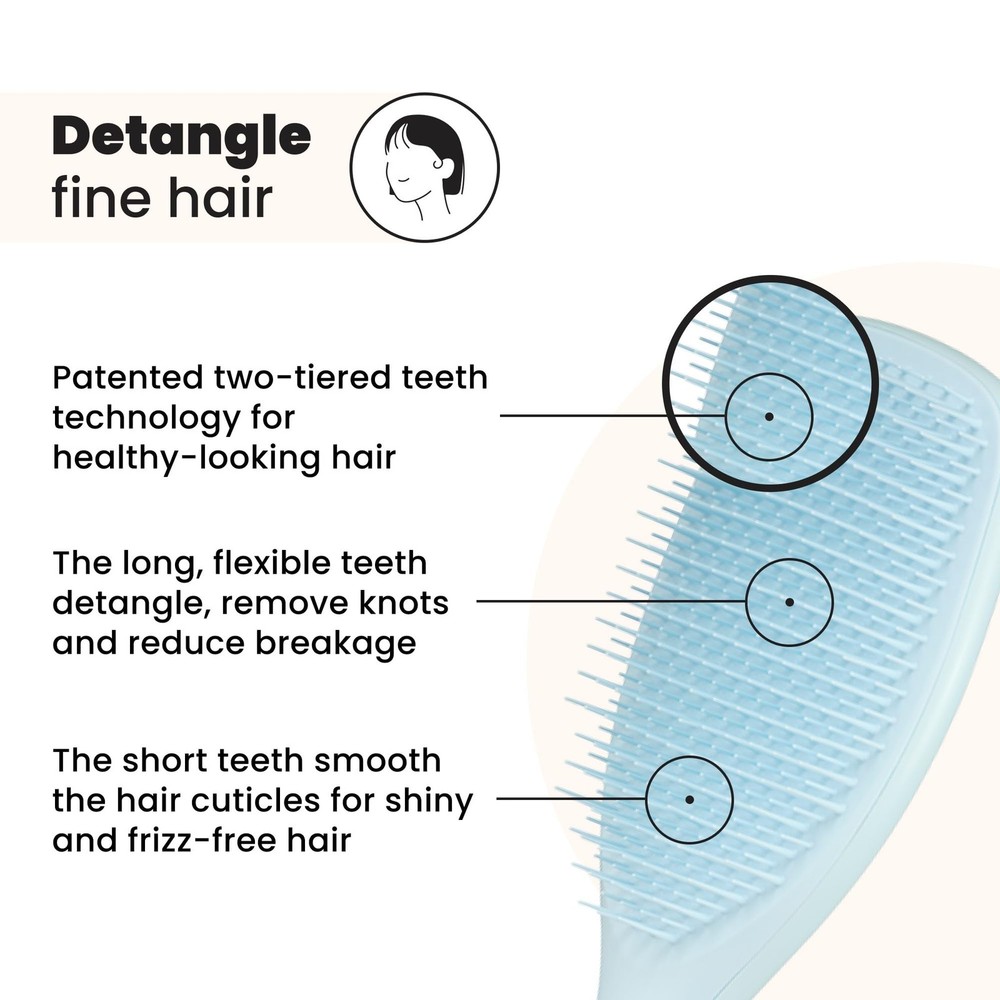 Tangle Teezer Fine Ultimate Detangler Brush, Dry & Wet Large, Seafoam Blue Description Features: Fine Hair Types: This Tangle Teezer hair brush has soft-flex teeth that are a grade softer than our original ultimate detangler to detangle vulnerable, color-treated, thin, and fine strands Innovative Design: Featuring our patented two-tiered teeth technology. The long, flexible teeth detangle, remove knots and reduce breakage, while the short teeth smooth strands, for frizz-free hair Gentle Detangling: Hair brush for women and men that’s tough on knots but gentle on sensitive scalps and fine hair Locks You Love: This versatile detangler brush has softer teeth that work effortlessly to detangle wet or dry hair for less breakage and more TLC Perfect Shower Brush: Ideal wet brush for evenly distributing hair products like conditioning treatments and masks, leaving your locks silky smooth Product Details: Handling We will ship all orders within 1 business day of payment. Delivery We Do Not Ship Outside of the Continental US. Return Policy All items qualify for returns within 30 days of receipt. Buyer is responsible for return shipping on any item that is not damaged. Feedback We take our reputation seriously, we buy and sell online, so we understand the value of trust. If you are unsatisfied with your order, please contact us and we will work with you to resolve it to your satisfaction.