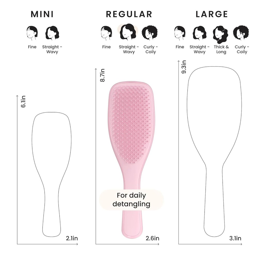 Tangle Teezer Ultimate Detangler Brush for Wet & Dry Hair, Eliminates Knots & Reduces Breakage for Straight to Wavy Hair Types, Millennial Pink Brand TANGLE TEEZER Color Millennial Pink Shape Oblong Bristle Material Plastic Handle Material Plastic About this item Everyday Hairbrush: This Tangle Teezer hair brush has regular-flex teeth that gently detangle straight to wavy strands Innovative Design: Featuring our patented two-tiered teeth technology. The long, flexible teeth detangle, remove knots and reduce breakage, while the short teeth smooth strands, for frizz-free hair Gentle Detangling: Hair brush for women and men that’s tough on knots but gentle on your scalp, no tugging or pulling here Locks You Love: This versatile detangler brush has soft teeth that work effortlessly to detangle wet or dry hair for less breakage and more TLC Perfect Shower Brush: Ideal wet brush for evenly distributing hair products like conditioning treatments and masks, leaving your locks silky smooth Same great product, sustainable new look: We are making our packaging more sustainable, and the packaging you receive during this transition may vary
