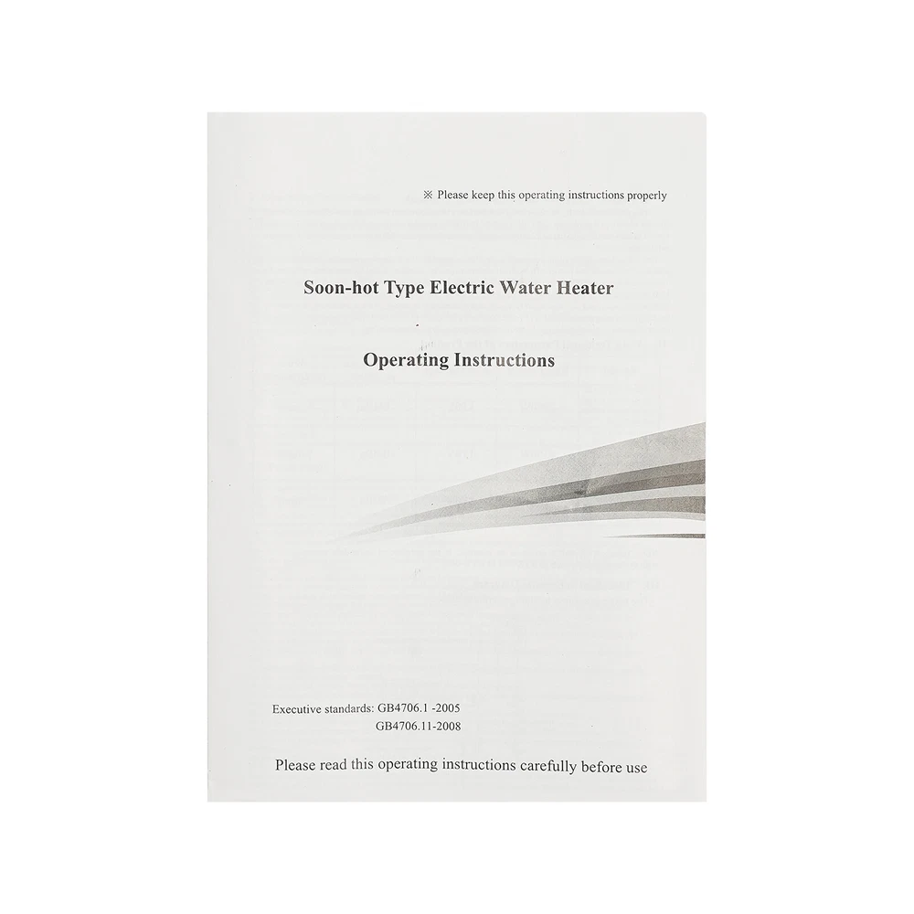 Application It is suitable for kitchens, cupboards, bathrooms, daily washing, RVs, bars, schools, hospitals, communities, hair salons, and so on to wash hands, dishes, clothes, and face. You can also take a shower above 0.04MPa water pressure. Package Included 1* Instant Water Heater 1* Hand Spray 1* Shower Hose 1* Water Inlet Hose 1* Flow Regulating Valve 1* Hand Spray Holder 1* English Instruction Other Accessories for Assembly Tankless Water Heater,110V 3500W Mini Electric Tankless Instant Hot Water Heater Without shower, hose, bracket. Description Our water heater uses a stainless steel heating core with 3500w large power, providing you with instant hot water and allowing for a comfortable washing/shower experience. In addition, it adopts multiple protection designs such as leakage protection, dry-heating protection, and grounding protection, ensuring high safety of water use. The mini body and modern appearance make it a great companion for a sink, faucet, or bathroom. Specifications Color: White Material: ABS, Stainless Steel Shape: Gourd-shaped Style: Mini, Instant Mounting Type: Wall-mounted, Vertical Usage: Indoor Use Features: With Leakage Protection Water Inlet Mode: Lower Water Inlet Heating Method: Instant, Stainless Steel Heating Tube Power Source: Corded Electric Voltage: 110V Frequency: 50Hz Power: 3500W Rated Pressure: 0MPa Operating Pressure: 0.04-0.4MPa Anti-Electric Shock Type: I Waterproof Grade: IPX4 Wire Requirements: >2.5m² Circuit Breaker Switch: >16A Heating Time: 3s Interface: 1/2"NPT Heating Temperature: 20-55℃/68-131℉ Power Cord Length: 0.9m/2.95ft Water Inlet Hose Length: 50cm/19.68inch Water Heater Size: 19*7.5*7.5 cm/7.48*2.95*2.95 inch Package Size: 27*28*12cm/10.6*11.02*4.7inch Net Weight: 1.35kg/2.97 lbs Gross Weight: 1.4kg/3.08 lbs Features Premium Material: The instant water heater uses stainless steel and high-quality ABS materials, making it sturdy, wear-resistant, anti-rust, and long-lasting. A Safe Heater: The various protections such as leakage protection, dry-heating protection, anti-electric wall technology, water-electricity isolation, overvoltage protection, thermostatic anti-scalding protection, over-temperature protection, grounding protection, and IPX4 waterproof rate make it safe to use without any worries. Instant Heating: Using a stainless steel heating tube with 3500w high power, this water heater can deliver warm hot water in about 3 seconds without storing water for preheating, which saves time/energy and prevents sediment/scale accumulation. Temperature Controllable: You can control the water temperature (68-131℉) by adjusting the water flow (large/small water flow--low/high temperature) and pressing the+/- keys on the panel, providing hot water that fits four seasons in a year. LED Display: The digital screen displays the water temperature and power, so you can keep track of them and get the desired temperature easier. Anti-scaling Design: It can filter the sediment, rust, and other large particles in the tap water, restore the tap water to the factory state, reduce energy consumption, and avoid damage to the human body and skin. Low Water Pressure Startup: The advanced temperature sensing technology overcomes the difficulty of using water heaters due to low water pressure, making it suitable for residential buildings with water pressure up to 0.04MPa. Cost-effective: The tankless water heater with 98% thermal efficiency can automatically regulate the power according to the water flow and temperature change, saving energy up to 50%. Only when it is used the water can be heated to the required place, eliminating the waste of unused water in the long water pipeline between the central water heater and each faucet. Mini Appearance: This mini wall-mounted white instant water heater with a unique gourd-shaped design and 4.6*2.8*6.3 inches size plays a decorative role and does not occupy much space. Simple Installation: With the equipped accessories, premade fixing screw holes, English manual, and 1/2" standard interfaces, you can install this heater easily. Details Power Cable: The 2.95ft power cable allows for easy installation in your cupboard or under the sink. Touch Button: The new-generation touch button with electronic control has a longer lifespan and good sealing. It resists wet and water and avoids mechanical failure of buttons. Application It is suitable for kitchens, cupboards, bathrooms, daily washing, RVs, bars, schools, hospitals, communities, hair salons, and so on to wash hands, dishes, clothes, and face. You can also take a shower above 0.04MPa water pressure. Package Included 1* Instant Water Heater 1* Water Inlet Hose 1* Flow Regulating Valve 1* English Instruction Other Accessories for Assembly How to Install Fix it through the premade screw holes at the proper position on the wall. Install the water flow regulating valve at the blue electric water inlet under the water heater. Install an electric partition wall at the red water outlet above the water heater. Connect the water inlet hose to the water flow regulating valve. Connect the water inlet. Turn on the water flow regulating valve to ensure that this product does not leak. Plug in the power. Long press the power button for 3 seconds to turn it on. Notes Please verify this unit is the right size for you before buying. The wire is required to be more than 2.5m² and the circuit breaker switch is greater than 16 A. The start-up water pressure of this machine is about 0.04Mpa. If the water flow is significantly too low, it is not recommended to buy, except for users who have added a water booster device. The water temperature will be affected by the inlet water temperature, the water pressure, and the voltage level. When the temperature and inlet water temperature is too low in winter, you can turn down the faucet or the water pressure switch that comes with the machine to achieve the adjusted temperature. Users with high requirements for water temperature, 