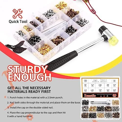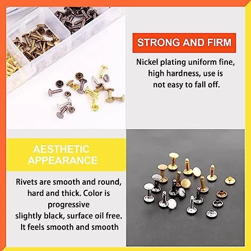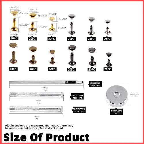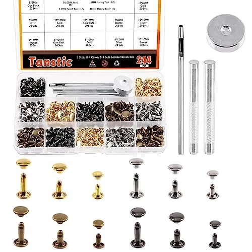 Menu 1. We require immediate payment. 2. We currently accept payment via eBay managed payments only. 3. Once payment is cleared, we will dispatch your shipment within 1-3 business days. Please refer to the "Shipping" tab for more information regarding shipping speed to your destination. Tanstic 244Pcs Leather Rivets Kit, 3 Sizes 4 Colors Double Cap Rivets Flat Tubular Metal Studs with Setting Tool Kit for Leather Craft Repair Decoration(Silver/Gun Black/Bronze/Gold) Product description ?[Package Information] You’ll get 244pcs leather rivets set, including 80 sets 8x8mm, 80 sets 10x10mm, 80 sets 8x12mm, 1pc rivet base, 1pc punch, 2pcs rivet installation tools. All of items are packed in a transparent plastic box for easy storage and carrying. ?[Copper Material] The double cap rivets are made of high-quality copper, durable, smooth, light, corrosion resistant, anti-rust, not easy to fade and can be used for a long-term. ?[Rich Size and Color] T are 3 sizes and 4 colors of leather rivets in the package. 3 sizes: 8x8mm, 10x10mm, 8x12mm; 4 colors: silver, gun black, bronze, gold. Multiple size and rich color can provide you many options, you can choose the suitable one to make your own style crafts. ?[Nice Setting Tool Kit] The punch tool and rivet base are good tools to take a hole on clothes or other surfaces. The installation tool help tighten the rivet and cap. In conclusion, this setting tool kit helps you complete your DIY crafts quickly and perfectly. ?[Wide Applications] Tanstic leather rivets and snaps are suitable for repairing or decorating DIY leather crafts, shoes, bags, clothes, hats, knife sheaths, purses, pet collars, belts, photo albums and other leather products. PLEASE MESSAGE US IF YOU HAVE ANY OTHER QUESTIONS, AND MANY THANKS FOR READING ALL OF THIS. Copyright ©#. All Rights Reserved.